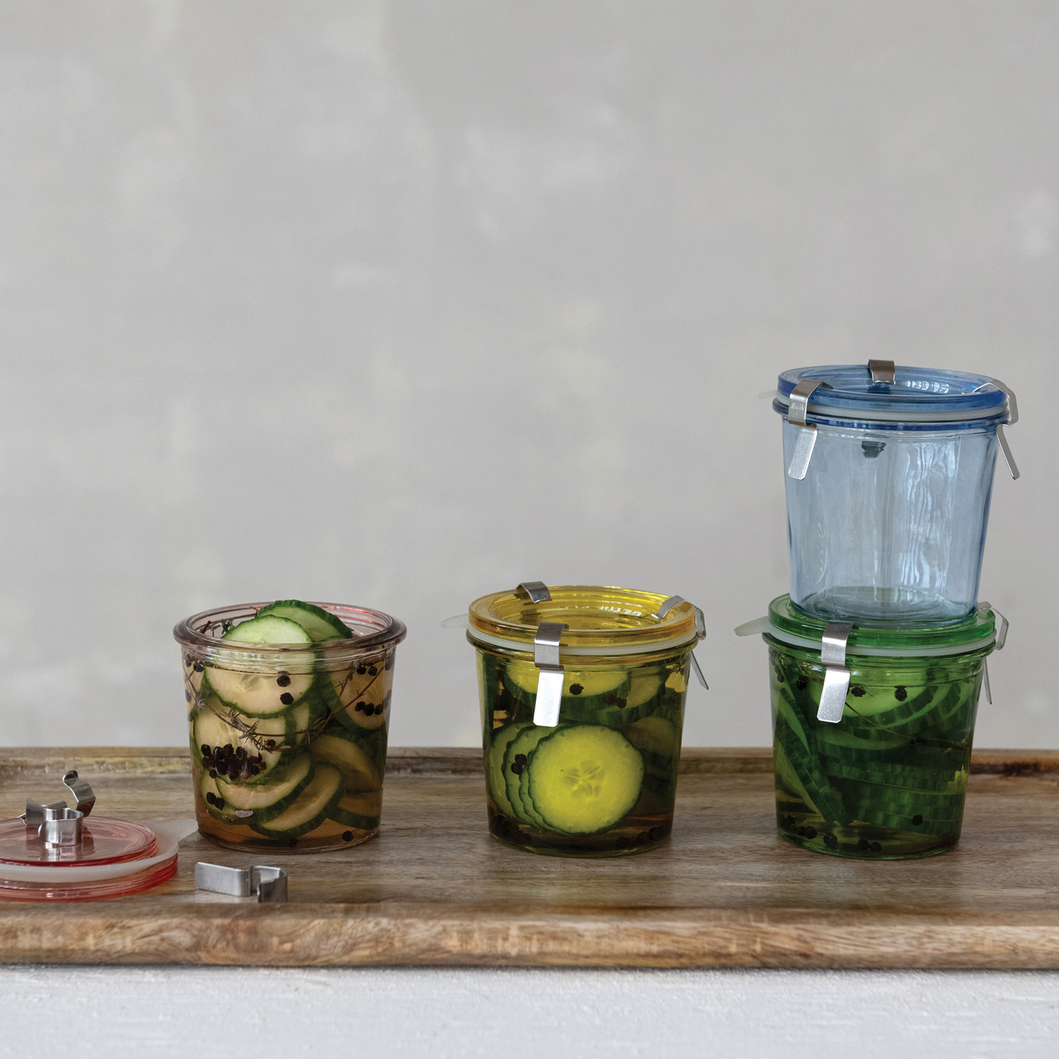 Food Storage Jar with Lid, Rubber Seal & 3 Metal Clamps, 4 Colors