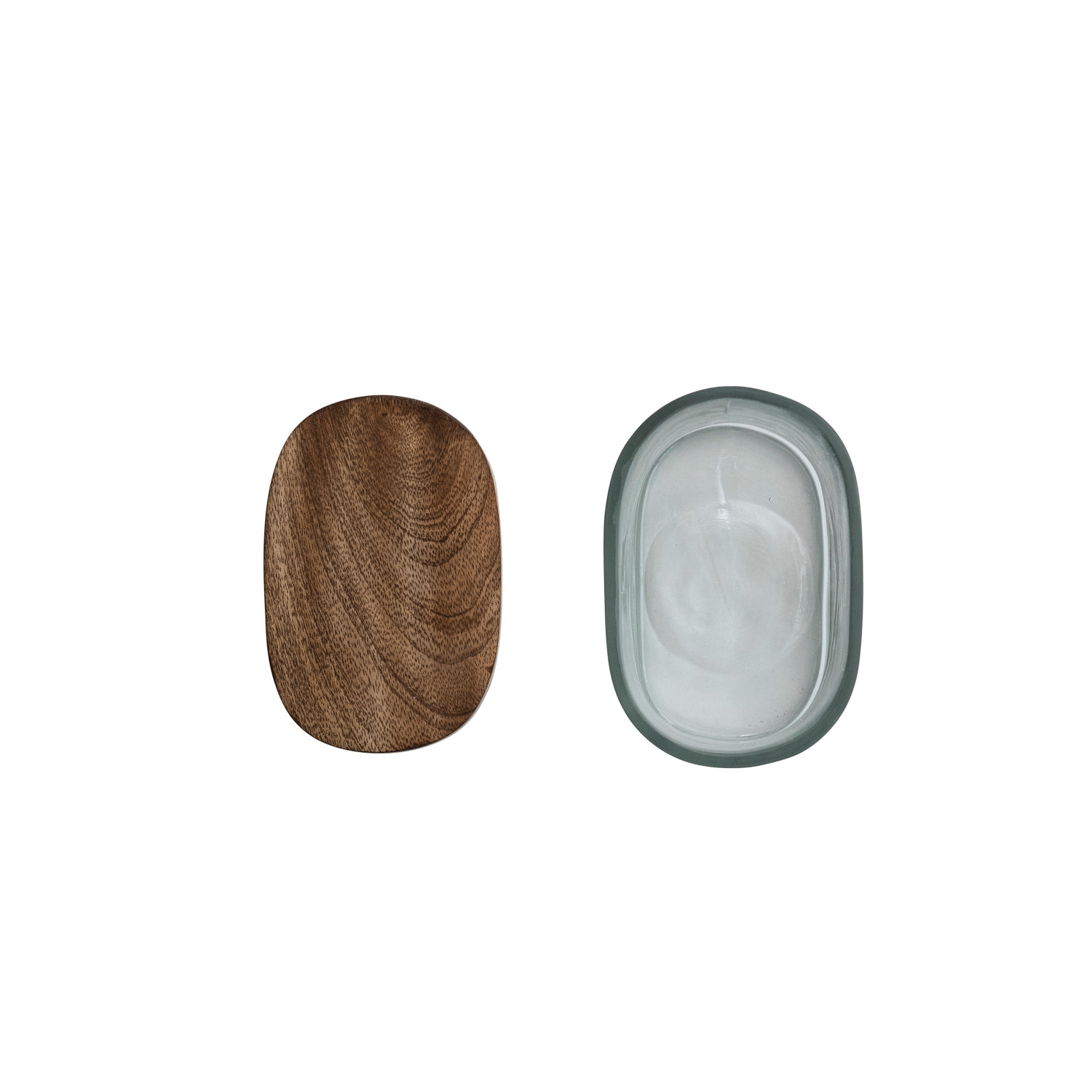 14 oz. Hand-Blown Glass Jar with Mango Wood Lid, Natural