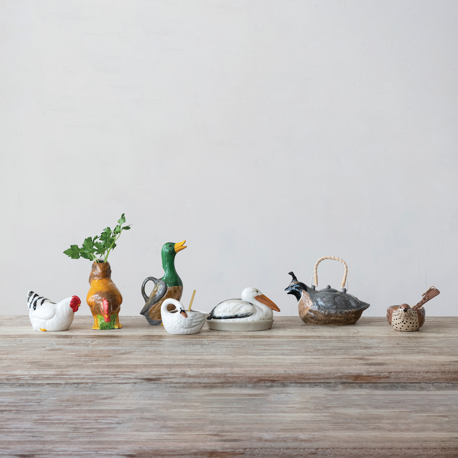 Hand-Painted Stoneware Pelican Shaped Butter Dish