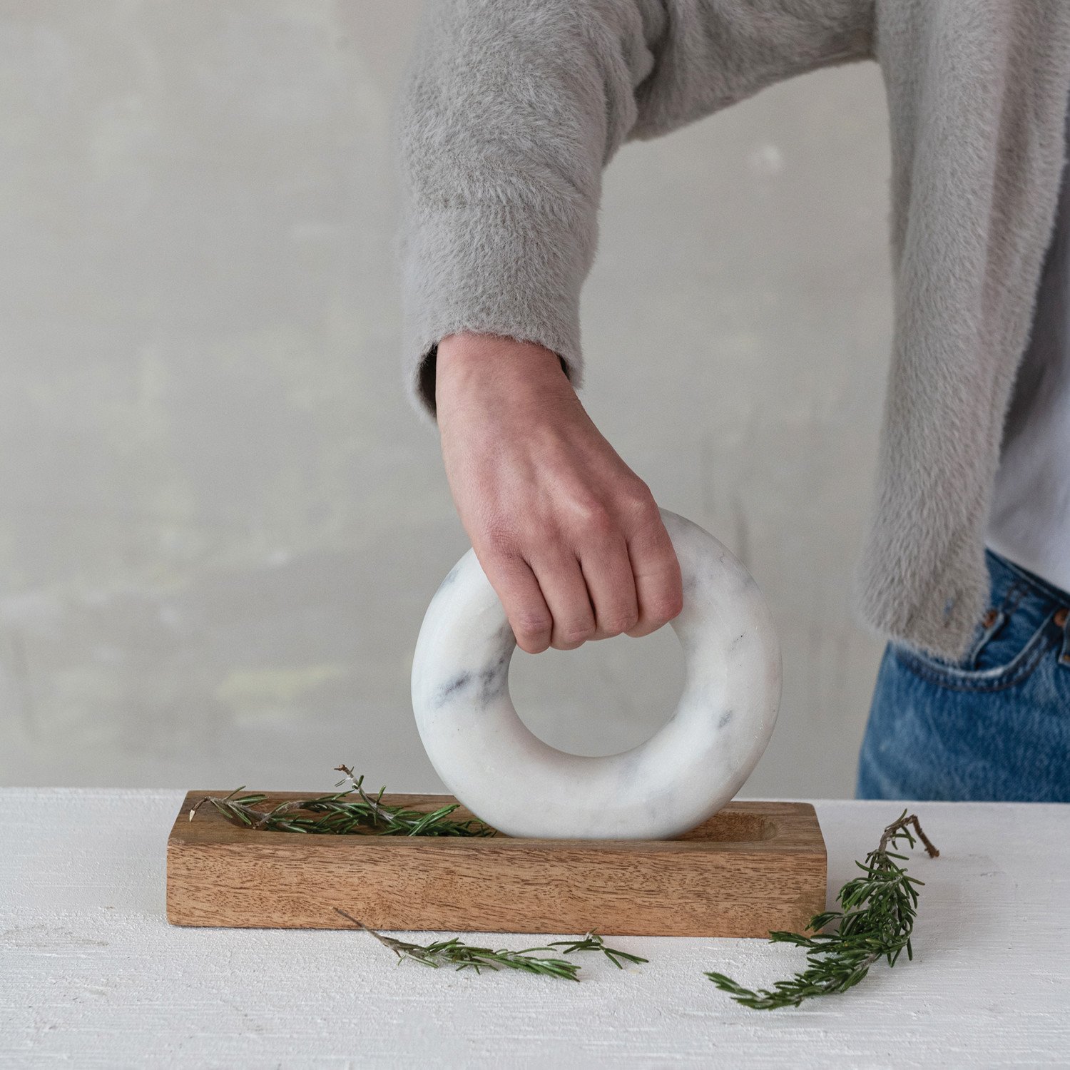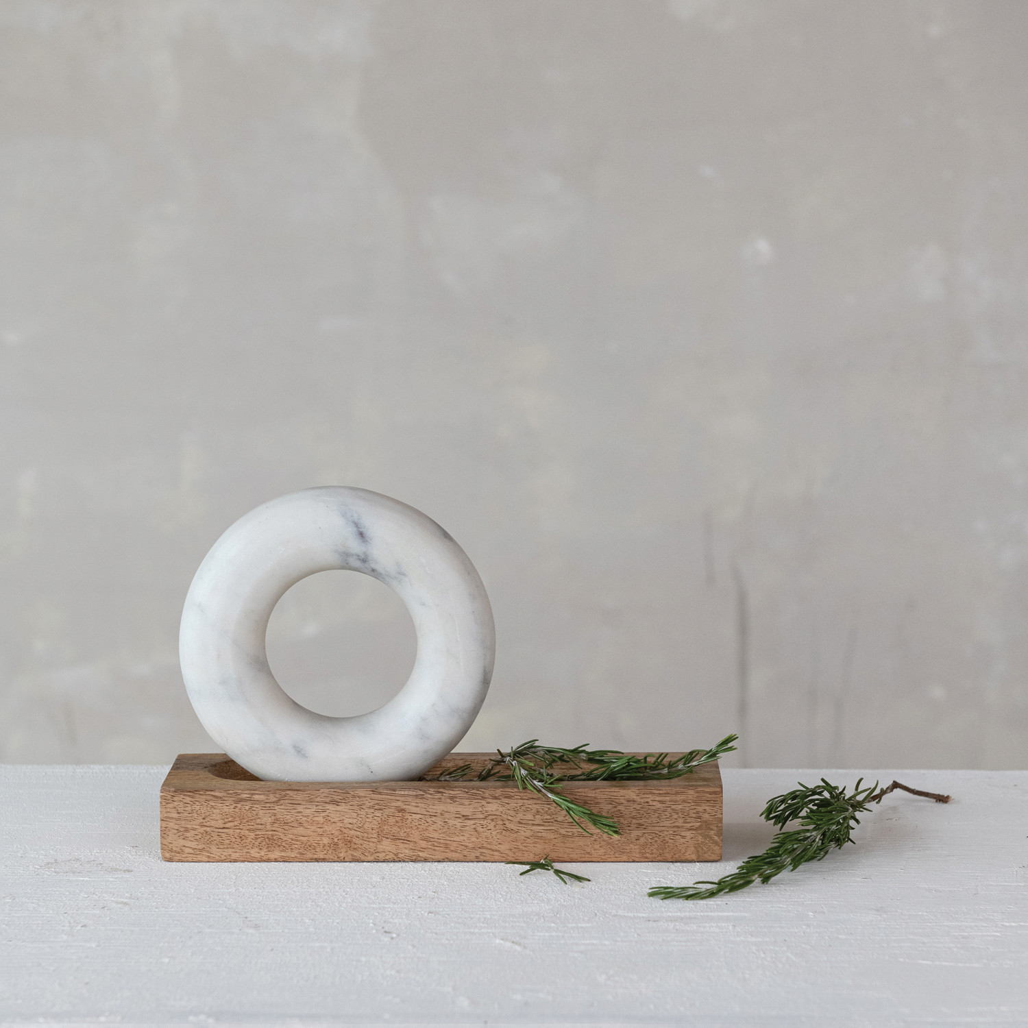 Mango Wood Mortar with Marble Ring Shaped Pestle, Boxed Set of 2