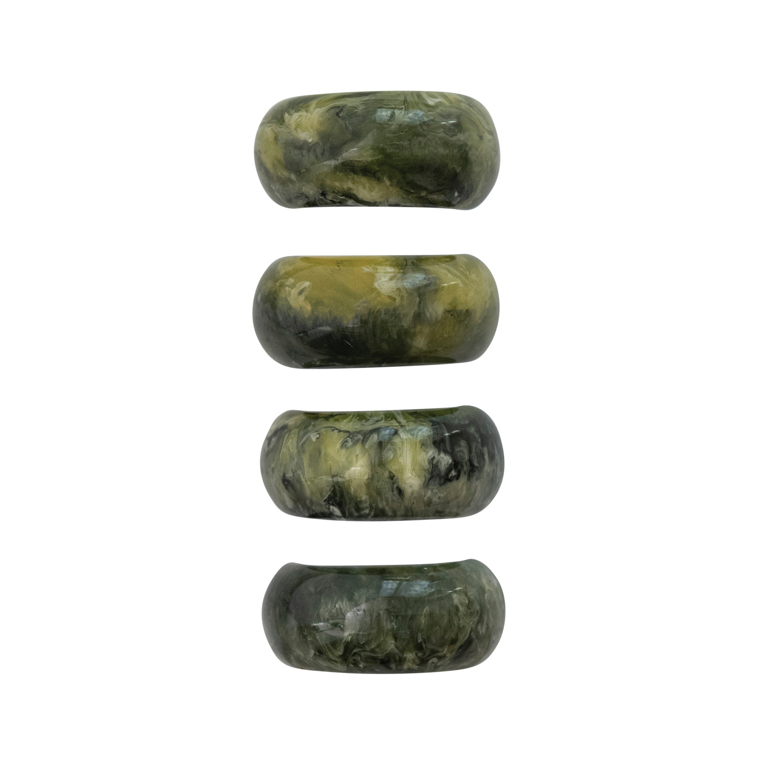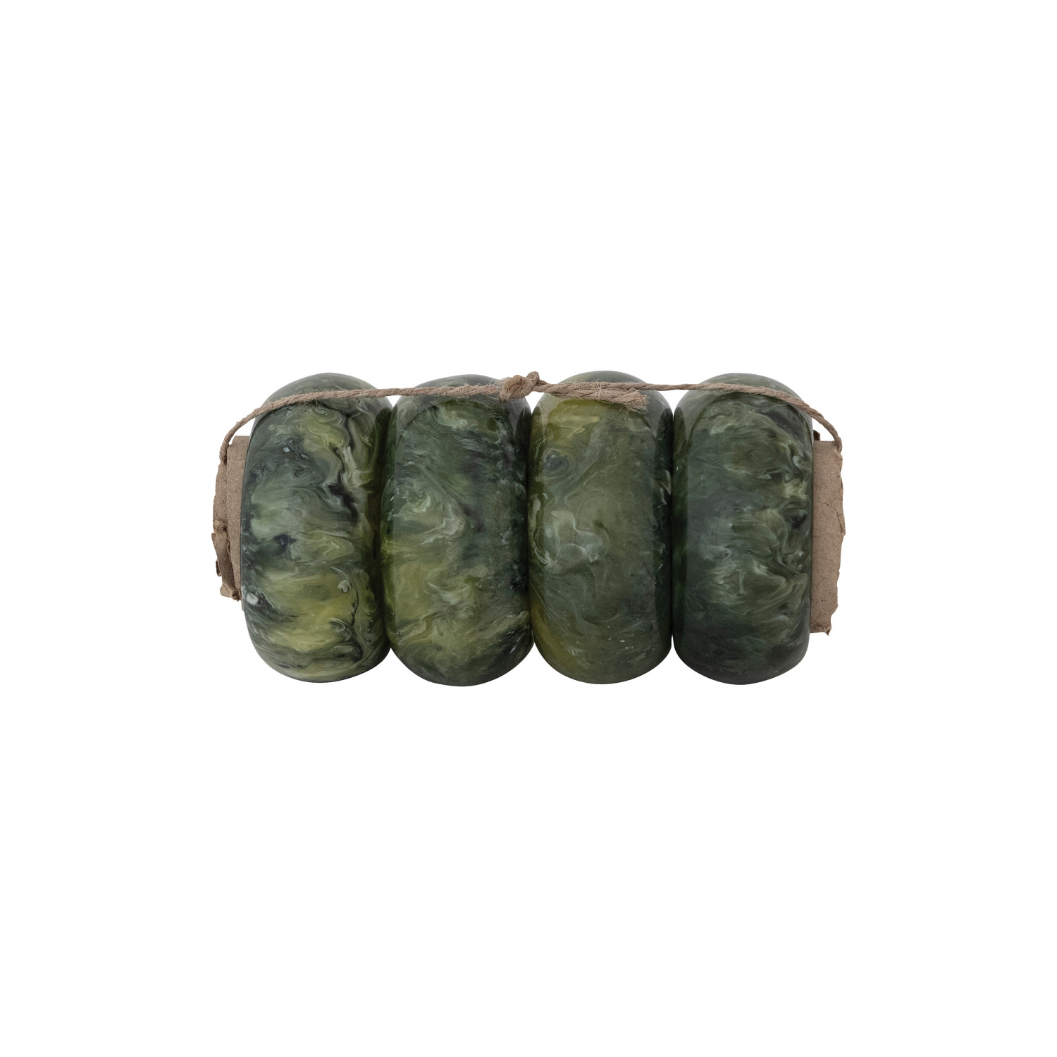 Marbled Resin Napkin Rings, Green, Set of 4 Tied with Jute (Each One Will Vary)