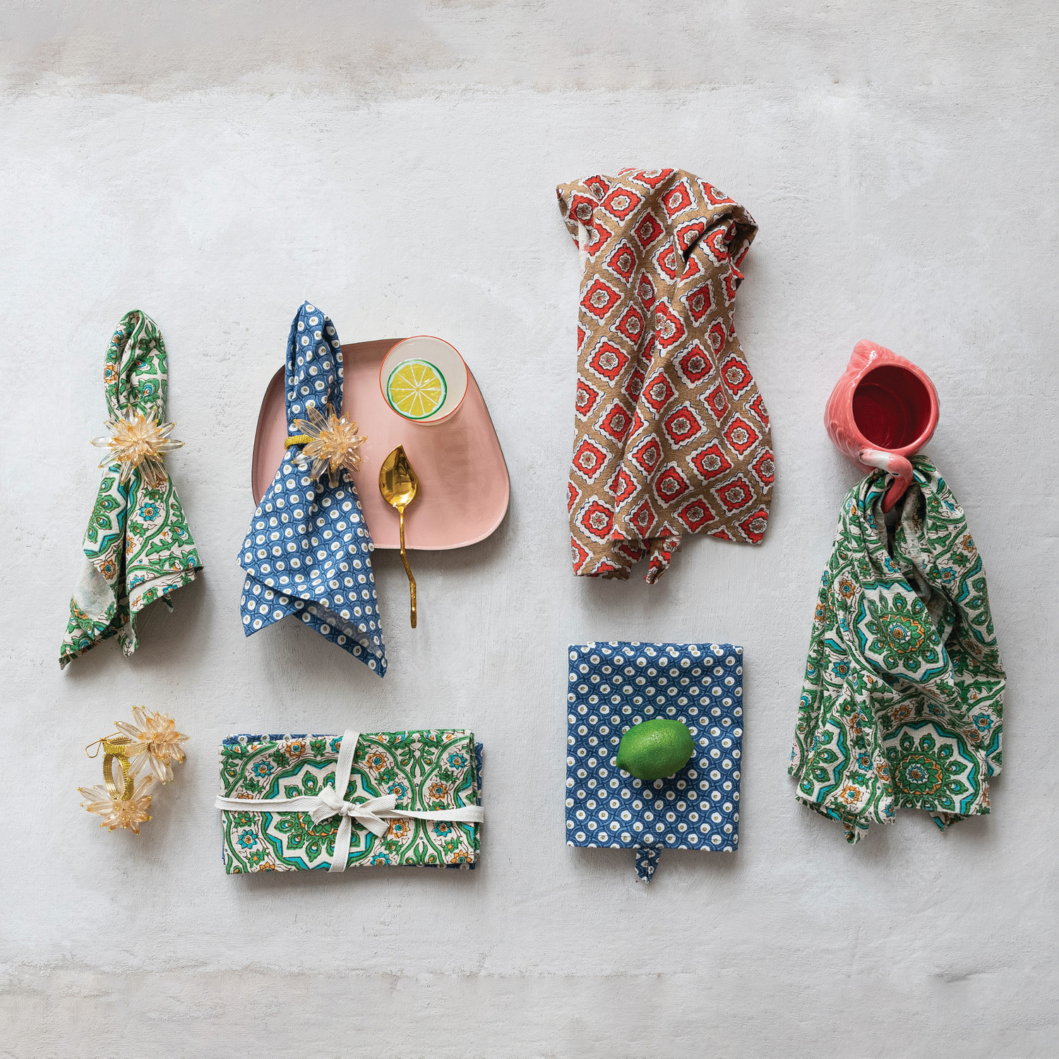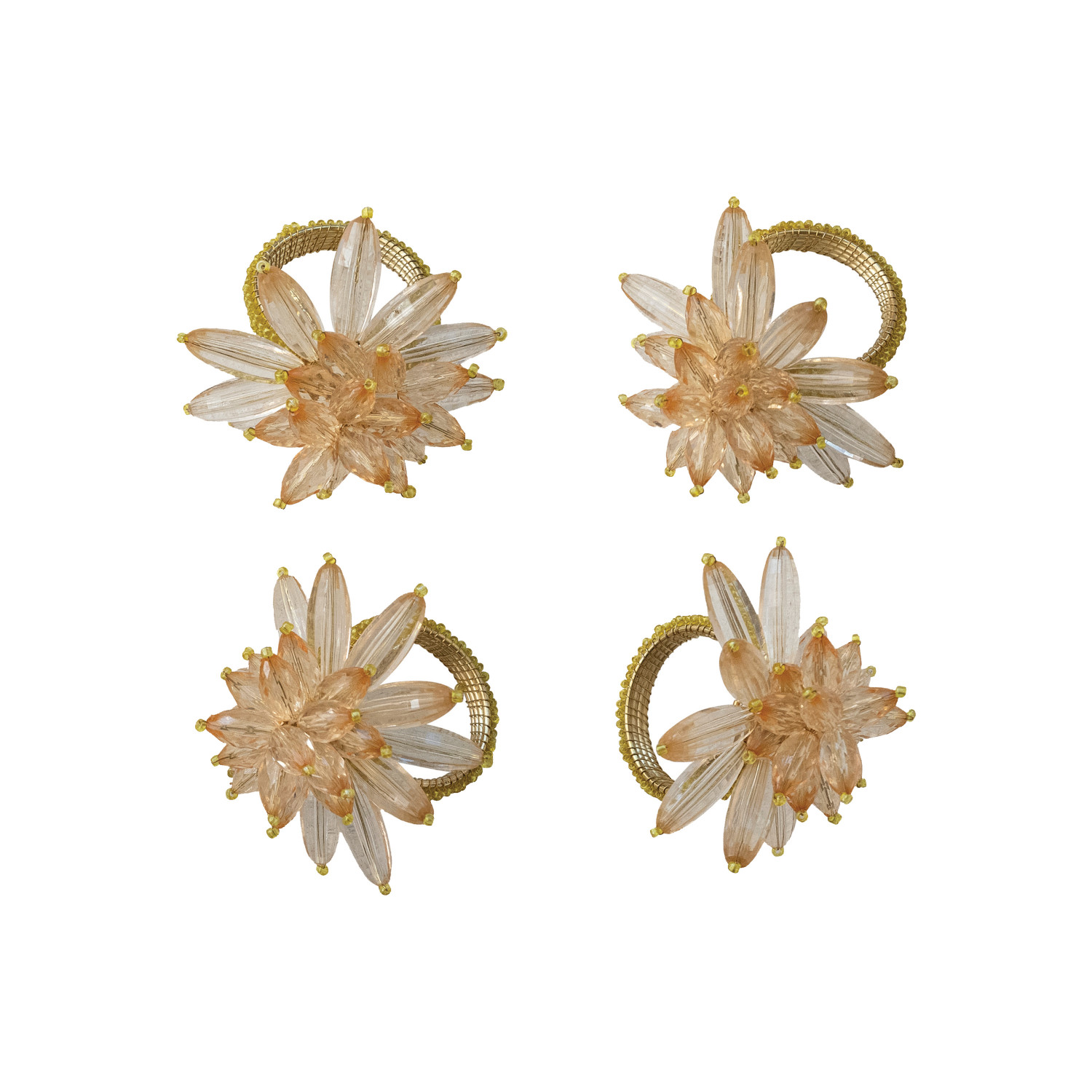 Handmade Acrylic & Glass Beaded Flower Napkin Rings, Set of 4 Tied with Gold Cord
