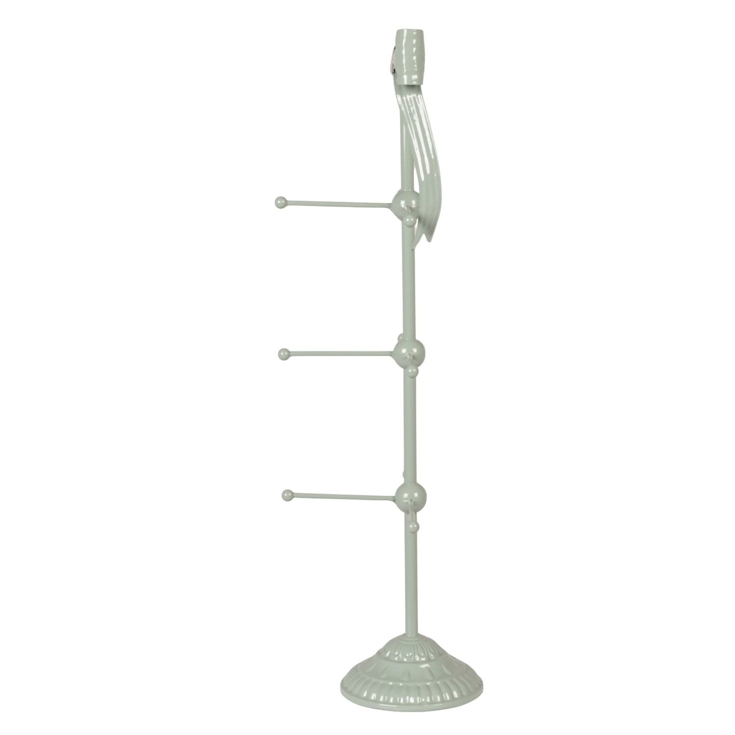 Catalog Name: 7-1/2"L x 6"W x 19"H Metal Mug Rack w/ Bow, Eucalyptus Color (Holds 9 Mugs)