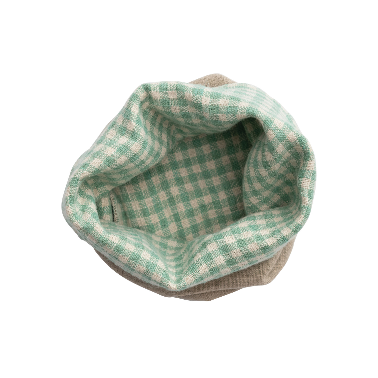 Hand-Woven Linen Bread Basket w/ Aqua Gingham Lining