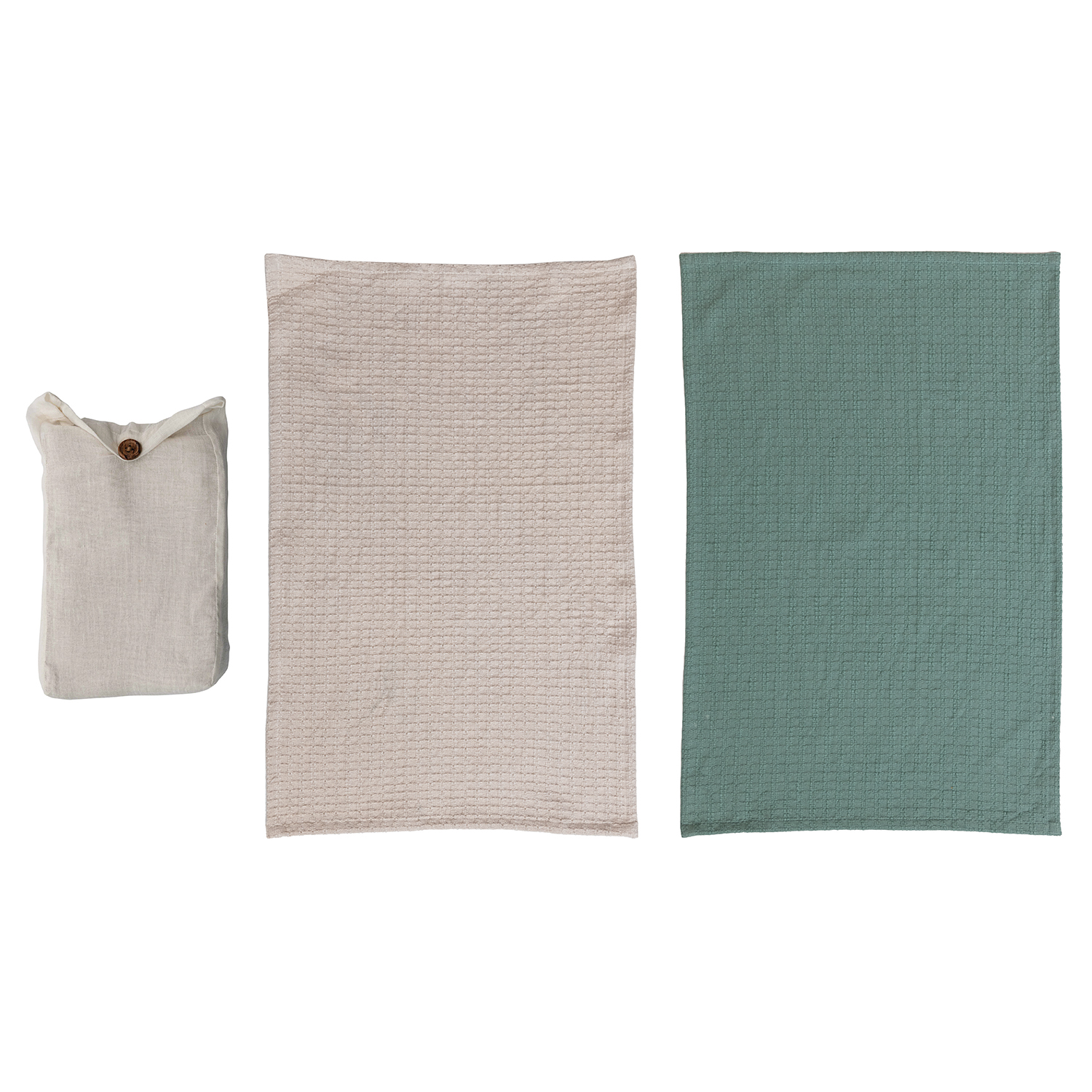 Catalog Name: 28"L x 18"W Cotton Waffle Weave Tea Towels, Teal & Natural, Set of 2 in Cotton Bag