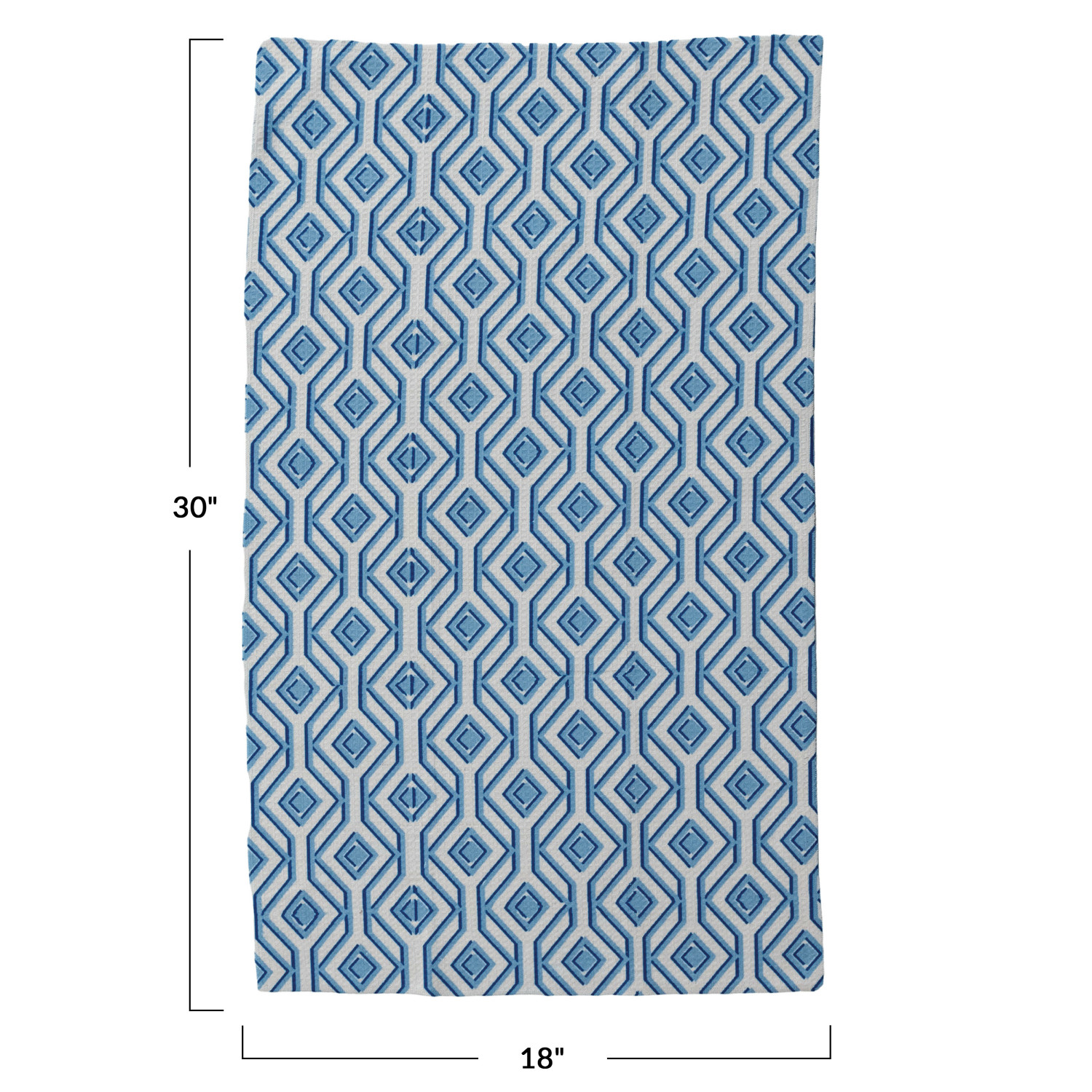 Catalog Name: 30"L x 18"W Printed Recycled Microfibre Tea Towel w/ Geometric Diamond Pattern, Blue & White