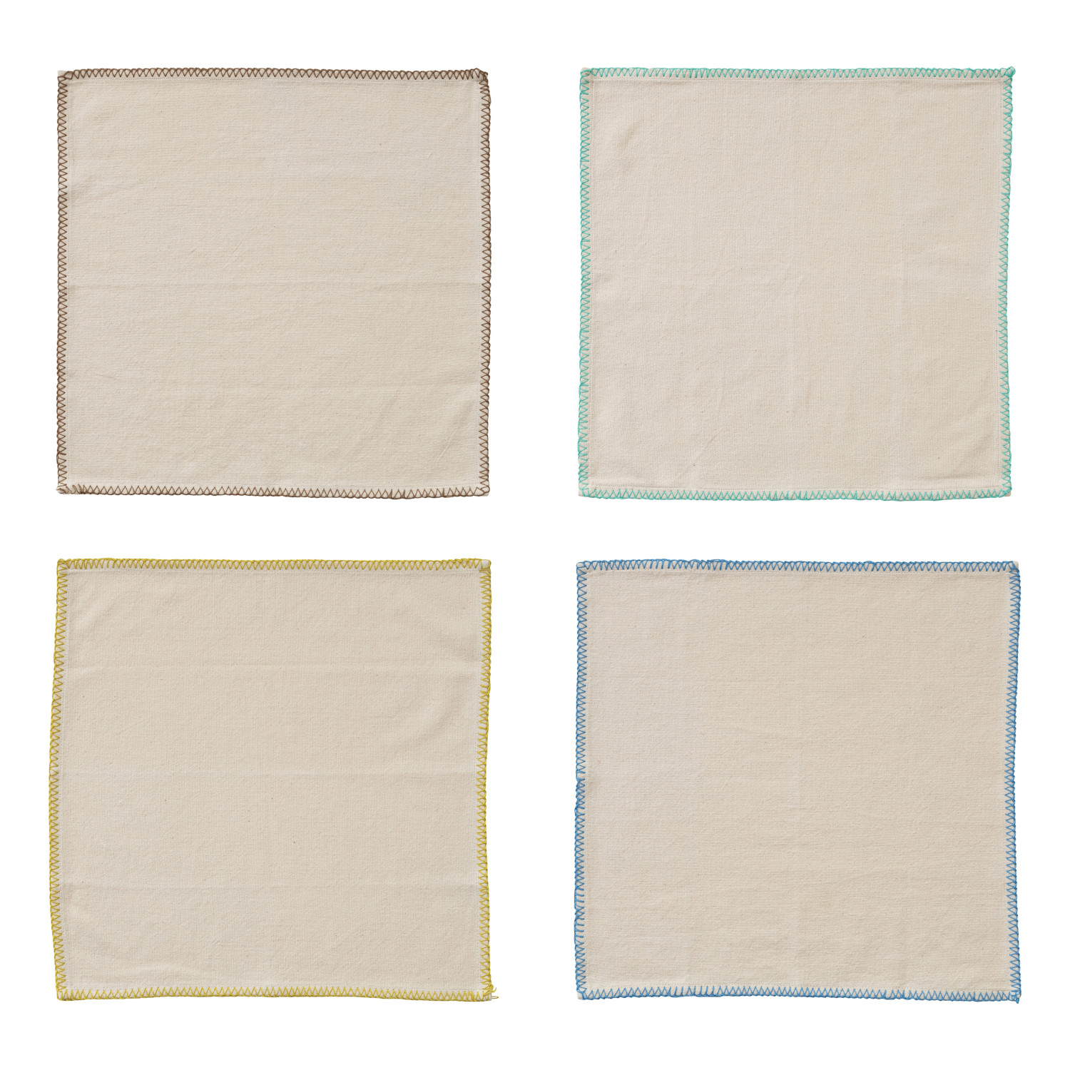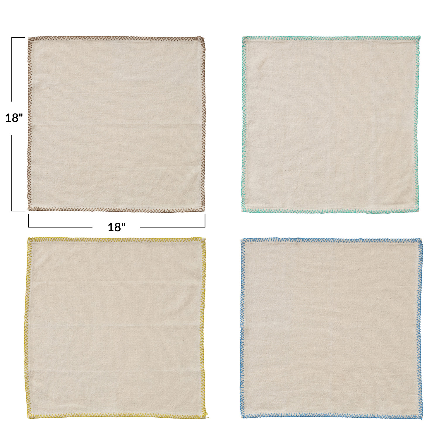 Catalog Name: 18" Square Cotton Napkins w/ Blanket Stitch Colored Edge, Multi Color, Set of 4 Tied w/ Cotton Tape