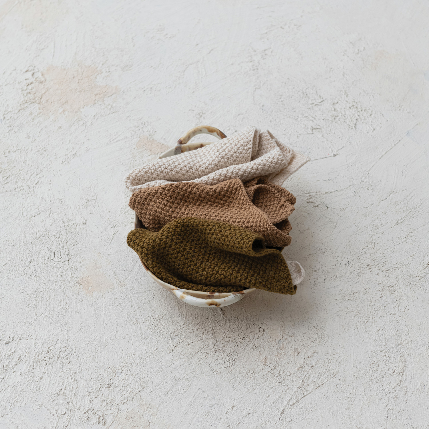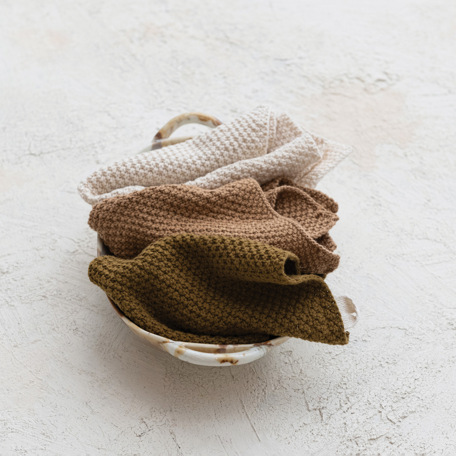 Cotton Knit Dish Cloths, Set of 3 Tied w/ Cotton Tape