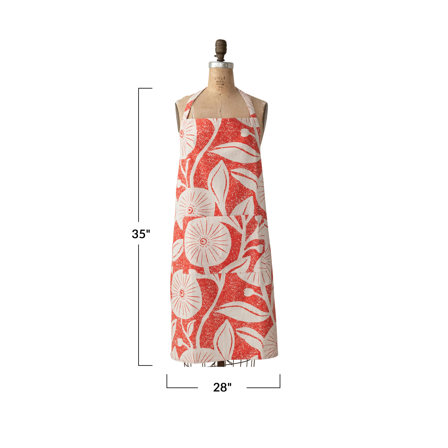 Catalog Name: 35"L x 28"W Cotton Printed Crossback Apron w/ Floral Pattern & Pocket, Natural & Tomato Color