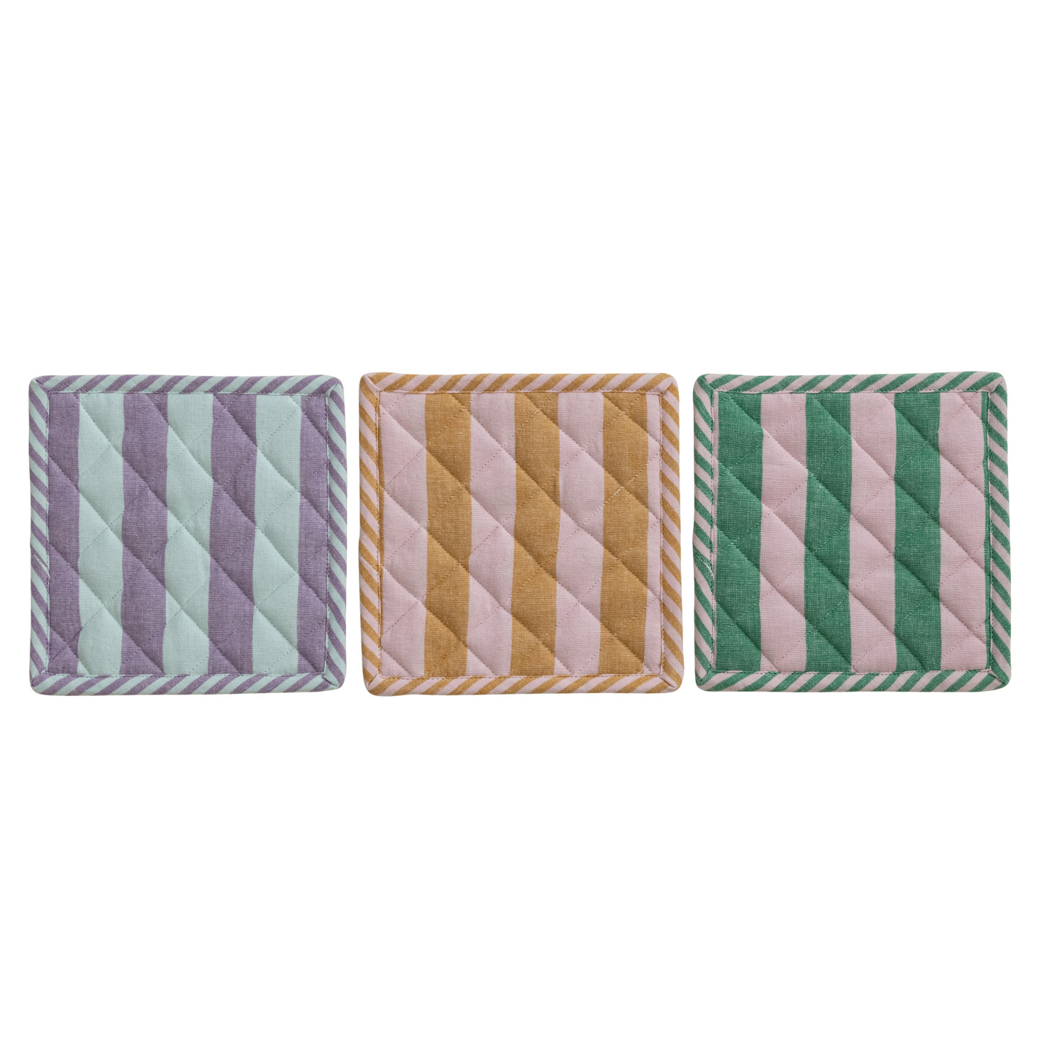 Catalog Name: 8" Square Woven Cotton Striped Pot Holder, 3 Colors