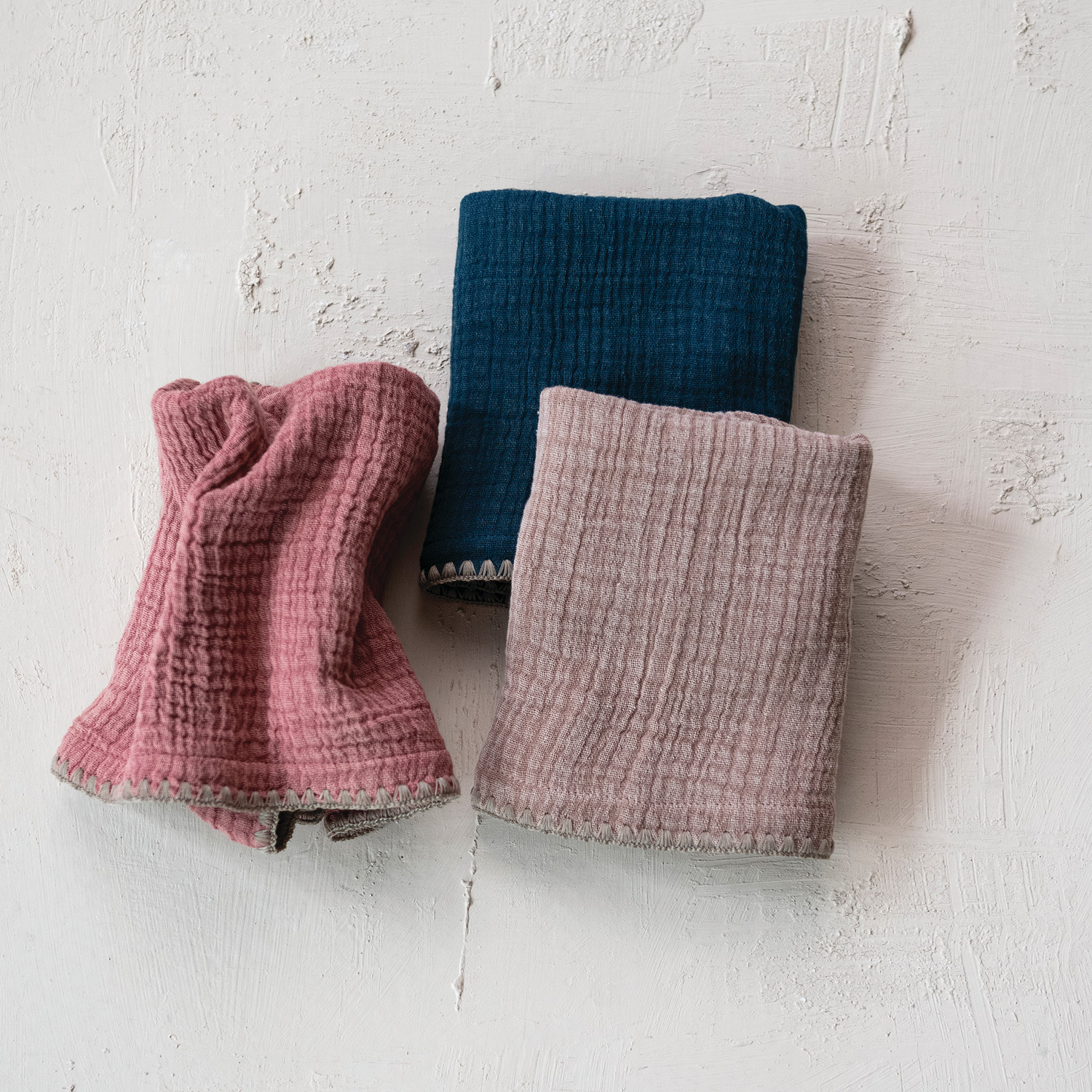 Stonewashed Cotton Double Cloth Tea Towel with Taupe Stitched Edge, 3 Colors