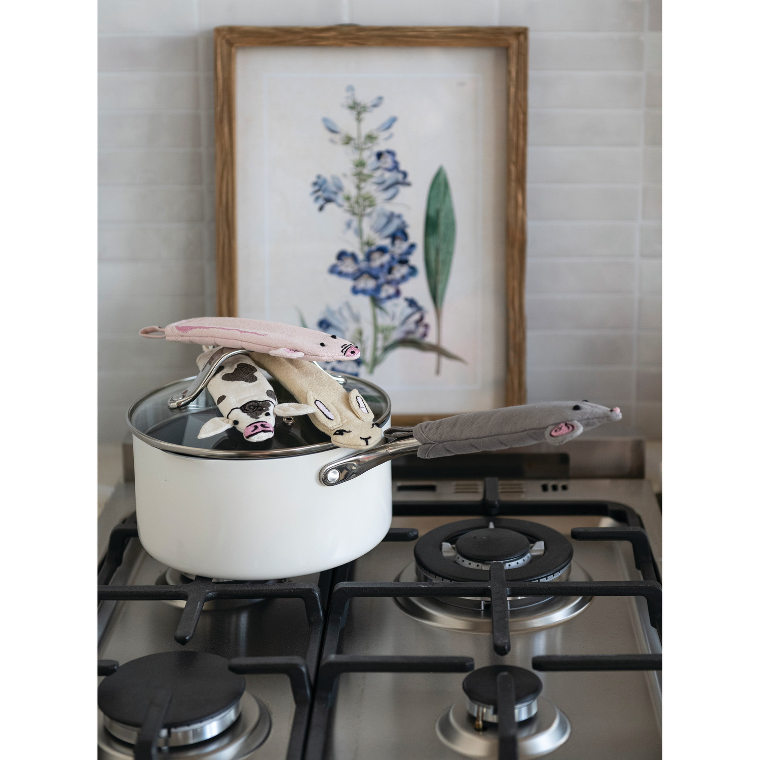 6-1/2"L x 1-3/4"W Cotton Animal Shaped Pot Handle Cover with Embroidery, 4 Styles