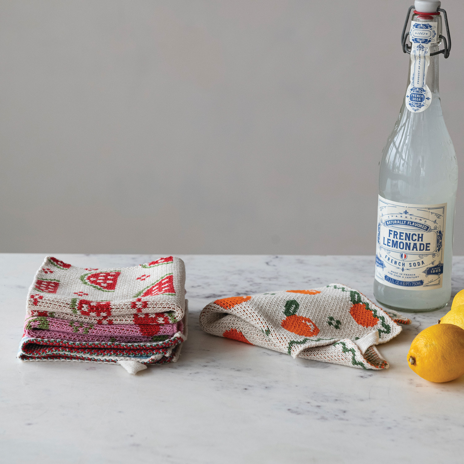 Cotton Knit Dish Cloth with Fruit Pattern, 4 Styles