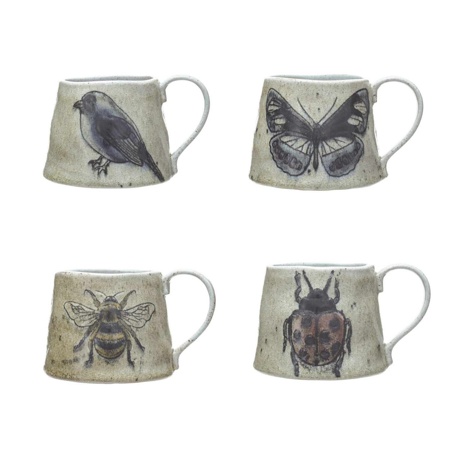 18 oz. Stoneware Mug w/ Insect/Bird, 4 Styles (Each One Will Vary)