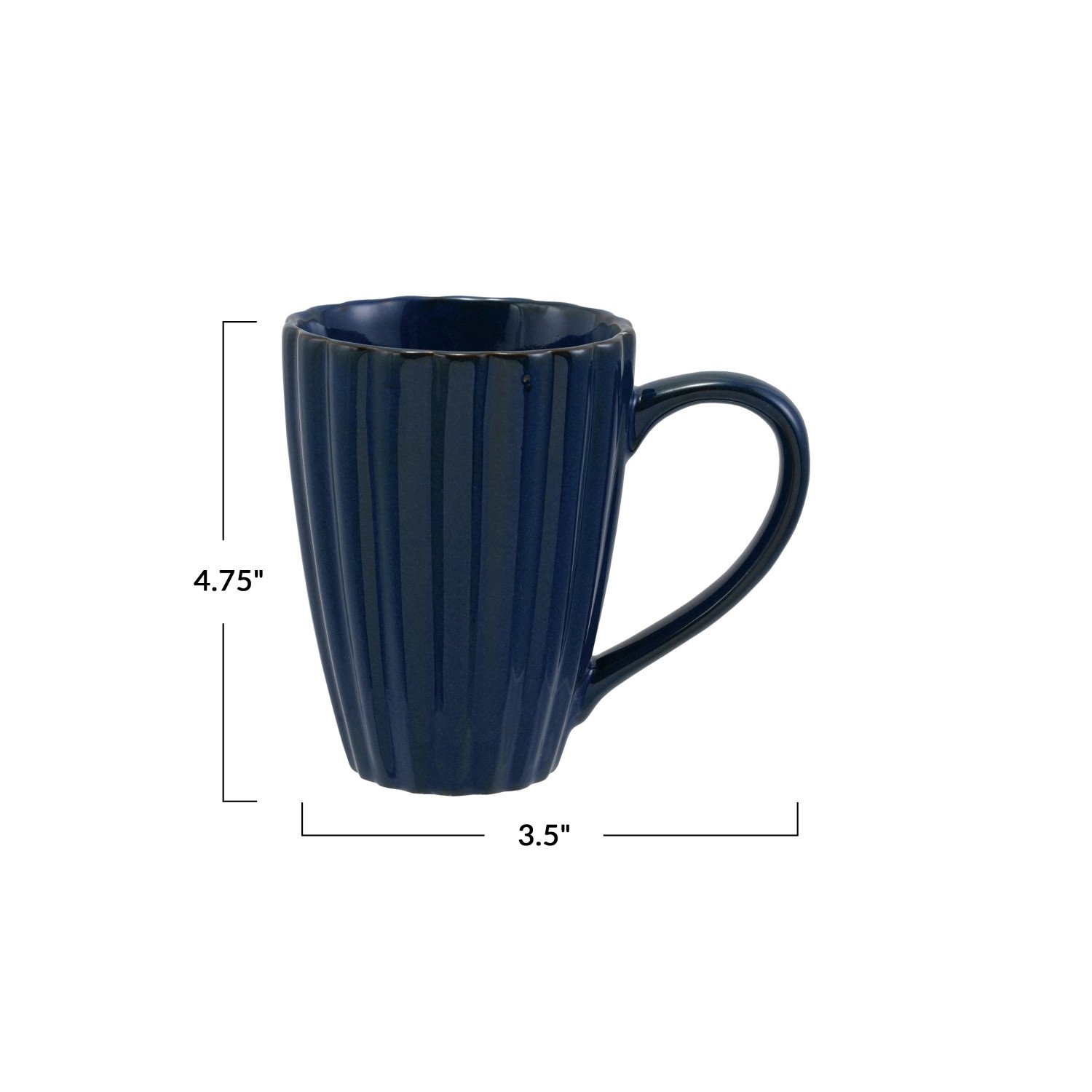 Catalog Name: 3-1/2" Round x 4-3/4"H 14 oz. Stoneware Ribbed Mug, Reactive Glaze, Blue (Each One Will Vary)