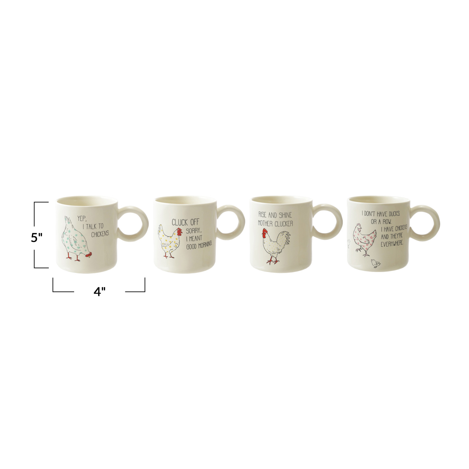 15 oz. Stoneware Mug w/ Chicken & Saying, 4 Styles