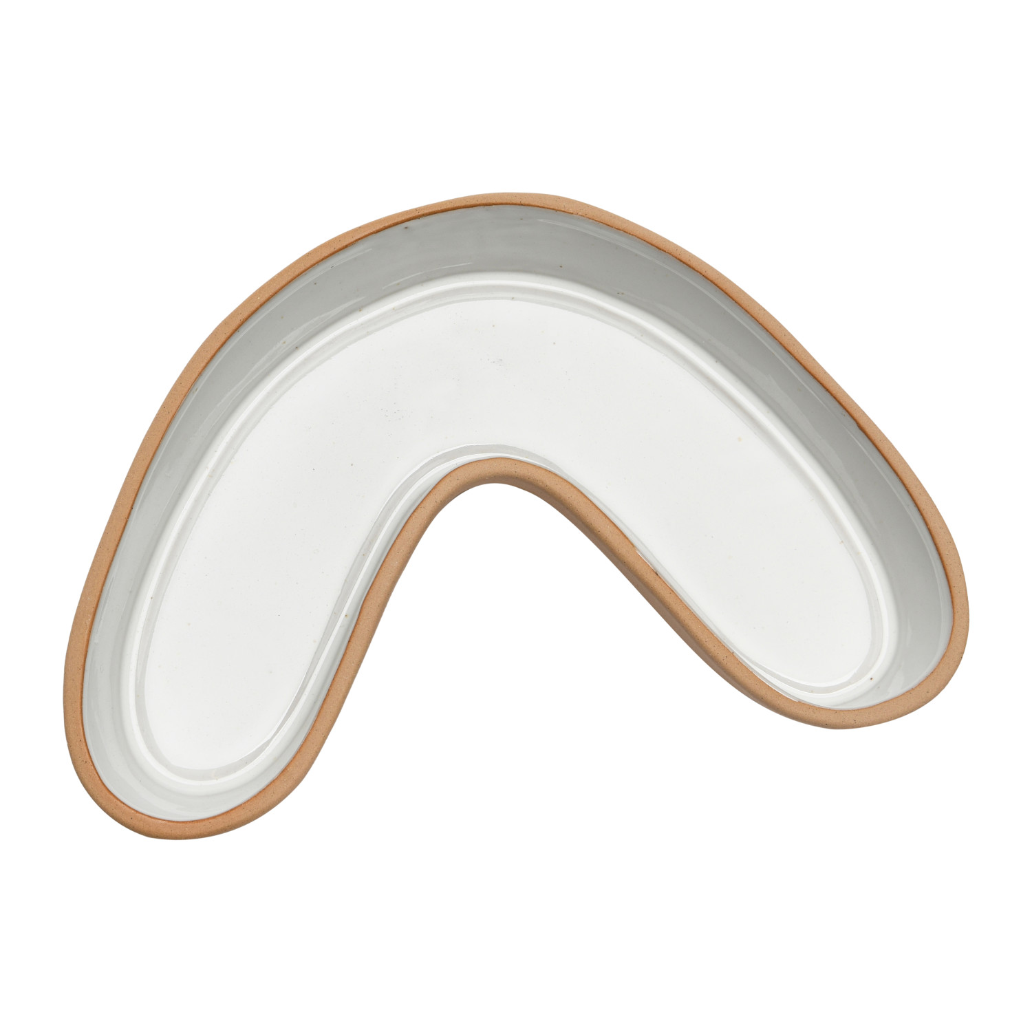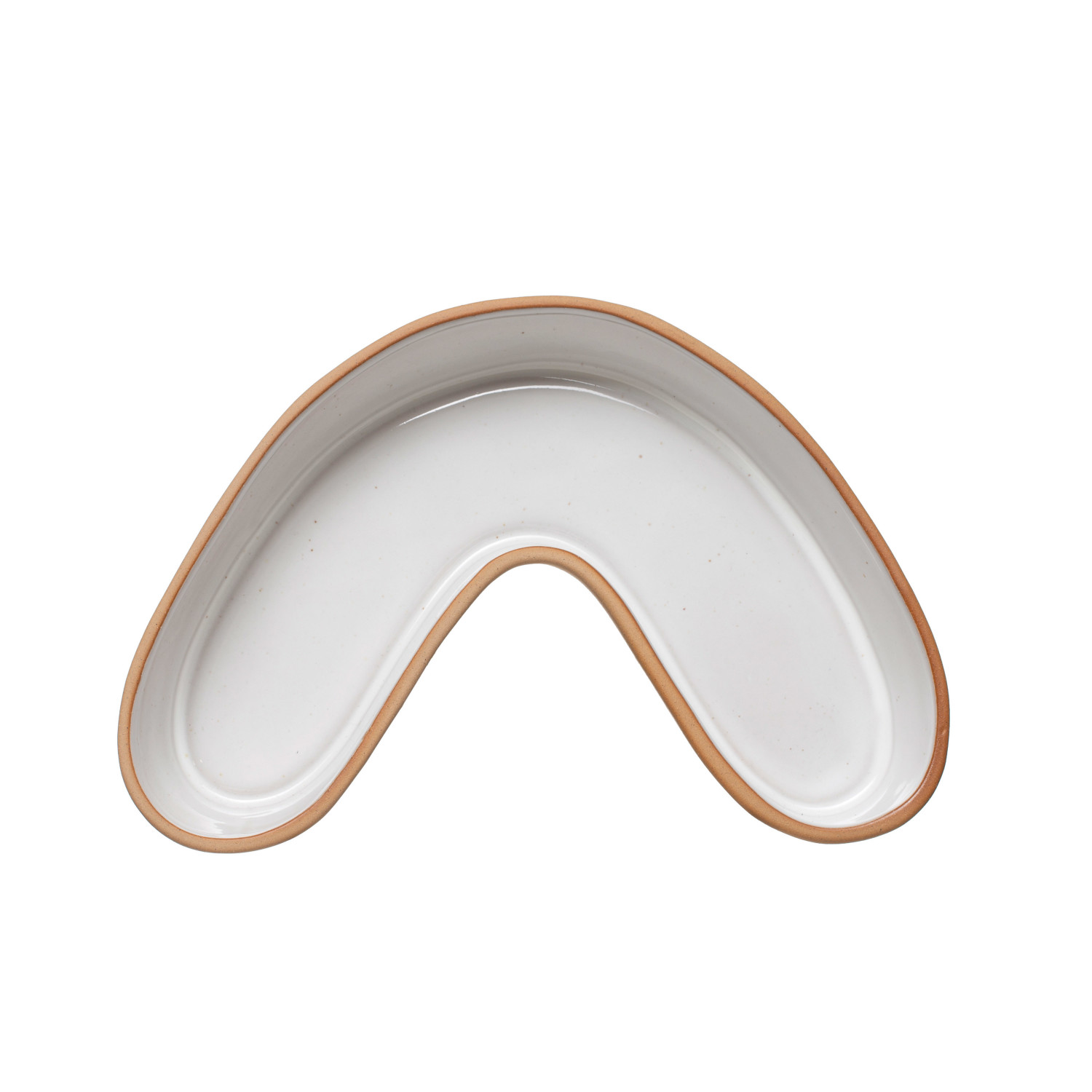 Catalog Name: 12-1/4"L x 8-1/4"W x 2-1/4"H Stoneware U-Shaped Dish, White & Terra-cotta Color