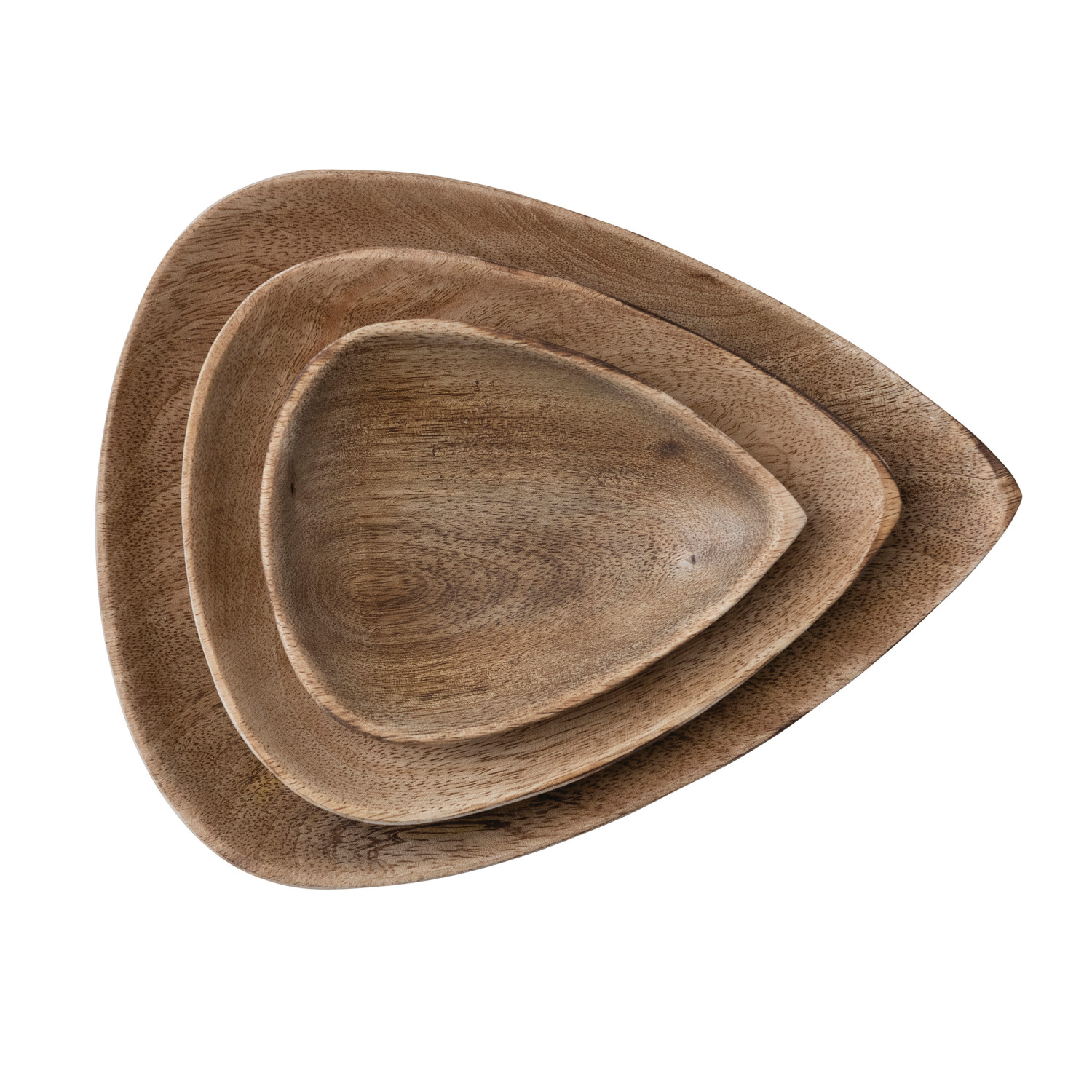 Mango Wood Triangular Trays/Plates, Natural, Set of 3