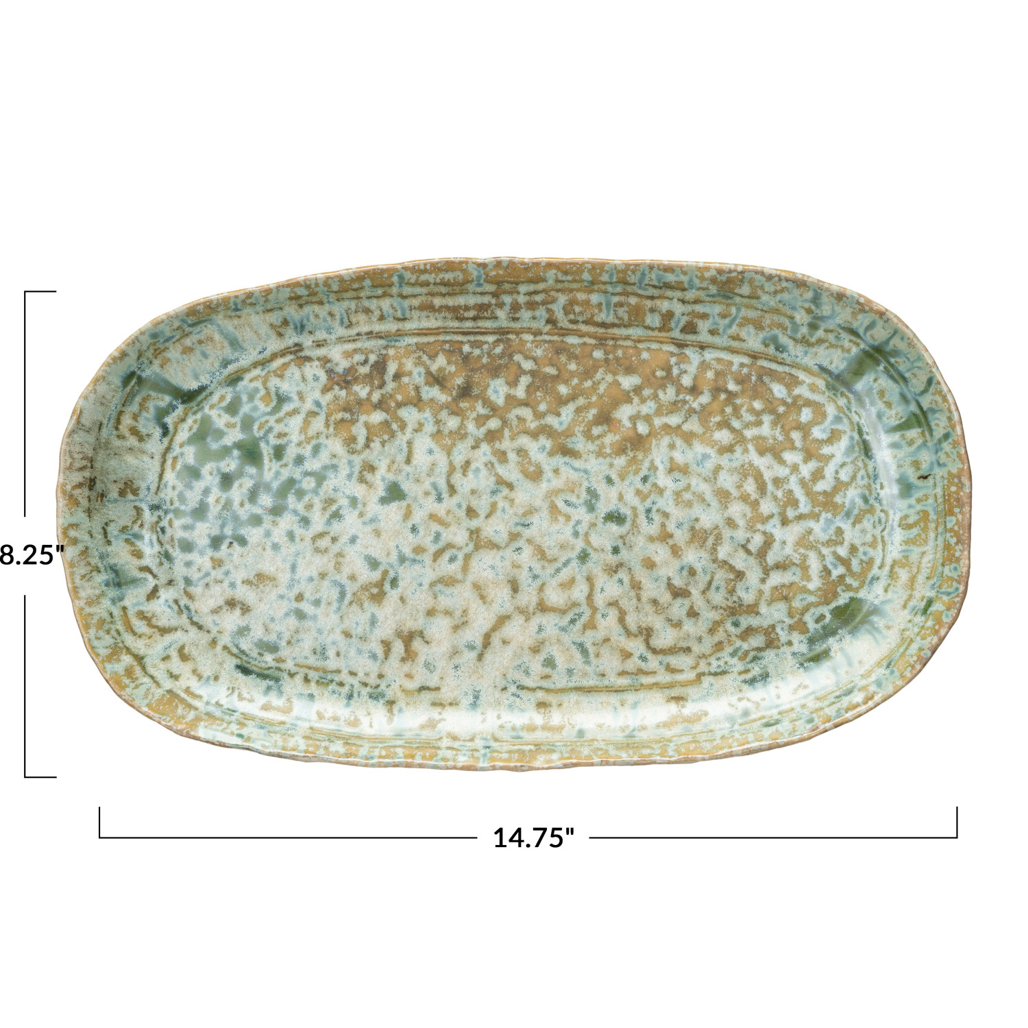 Catalog Name: 14-3/4"L x 8-1/4"W Stoneware Platter, Reactive Crackle Glaze, Green (Each One Will Vary)