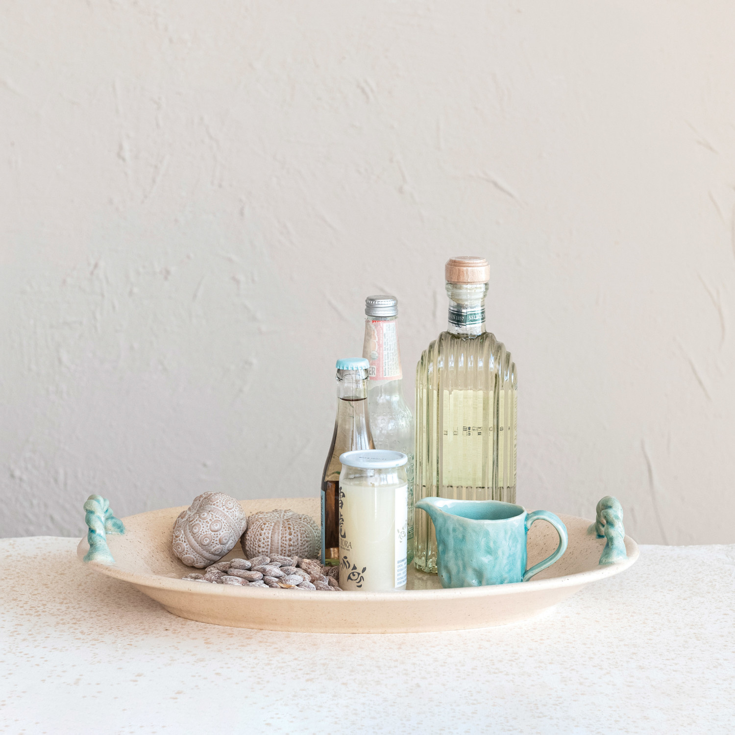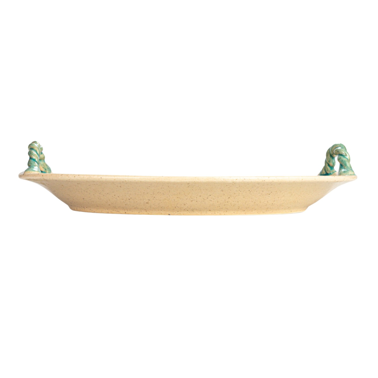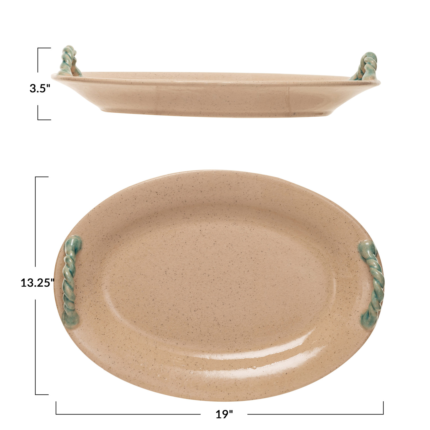 Catalog Name: 19"L x 13-1/4"W x 3-1/2"H Terra-cotta Platter w/ Hand-Painted Twisted Handles, Crackle Glaze, Beige & Aqua (Each One Will Vary)