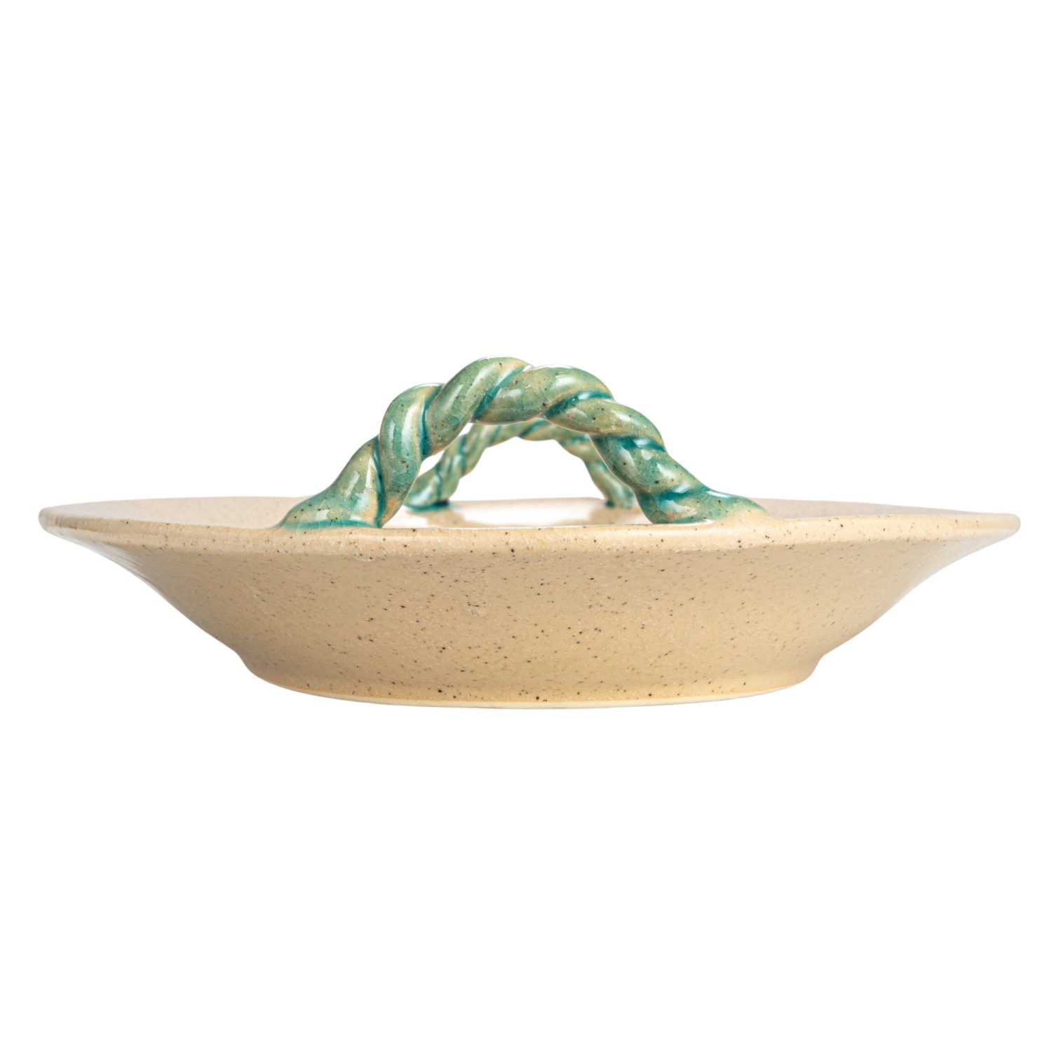 This cream and blue terra-cotta platter with hand-painted braided handles is a versatile and beautiful addition to any serveware collection. Its unique design features hand-painted braided handles that add charm and contrast, while the crackle glaze finish creates a textured and varied look. The platter is made of terra-cotta, a sturdy material that can withstand high temperatures and frequent use. It can be used for serving appetizers, snacks, desserts, or any other food, and its oval shape accommodates a large amount of food. The cream and blue color complements any table setting and can suit any style, from farmhouse to coastal to French country. The platter measures 19 inches in length, 13.25 inches in width, and 3.5 inches in height, making it generous enough to serve a large group of guests.