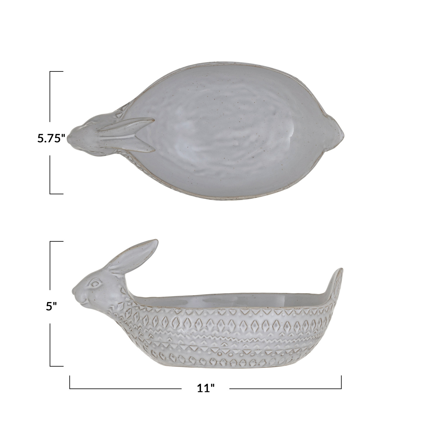 Catalog Name: 11"L x 5-3/4"W x 5"H Debossed Stoneware Rabbit Bowl, Reactive Glaze, White (Each One Will Vary)