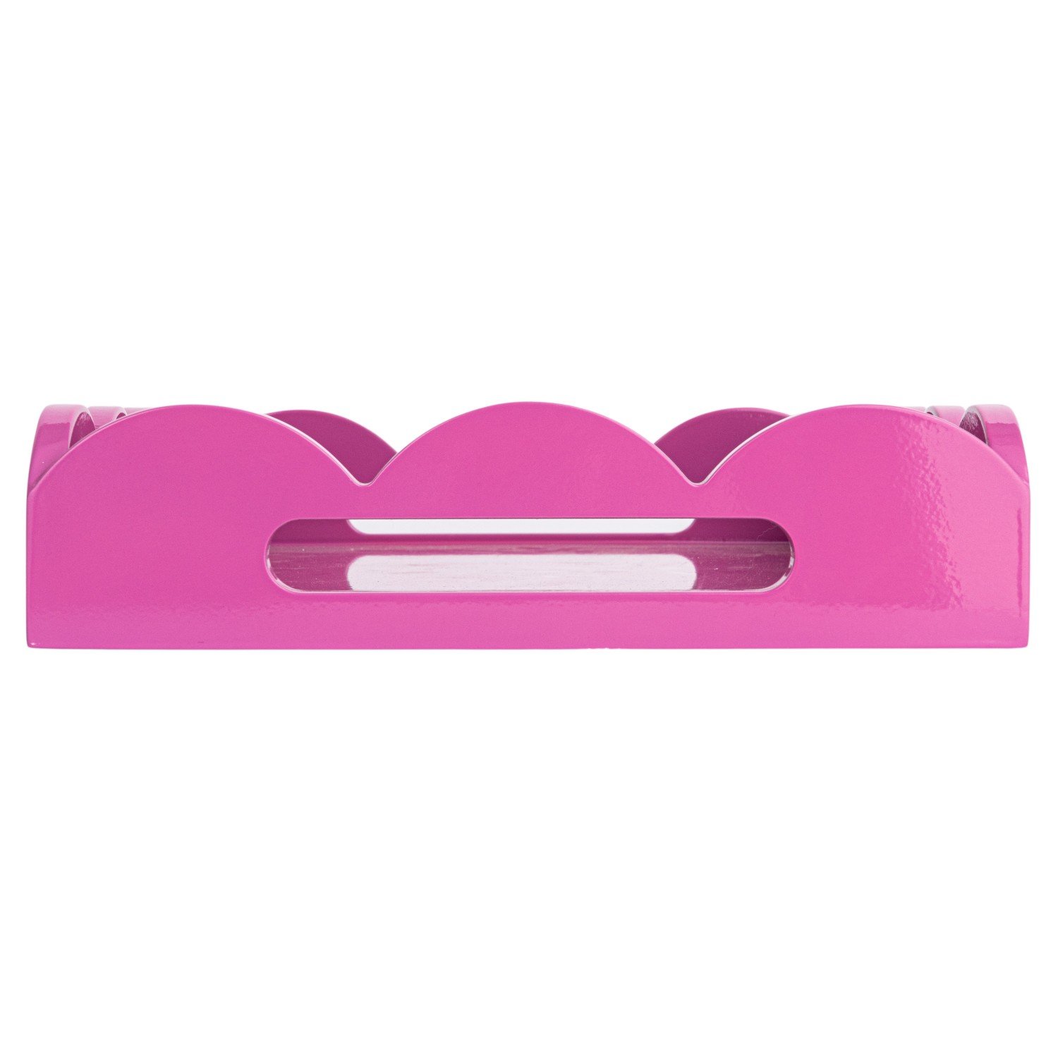 Catalog Name: 16-1/4"L x 10-1/2"W x 2-1/2"H MDF Lacquered Scalloped Tray w/ Handles, Fuchsia Color