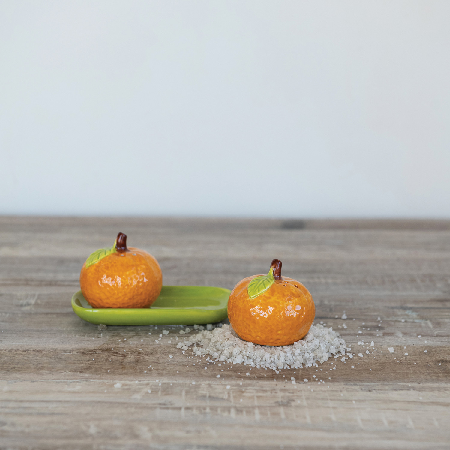 Clementine Shaped Salt & Pepper Shakers with Tray, Set of 3