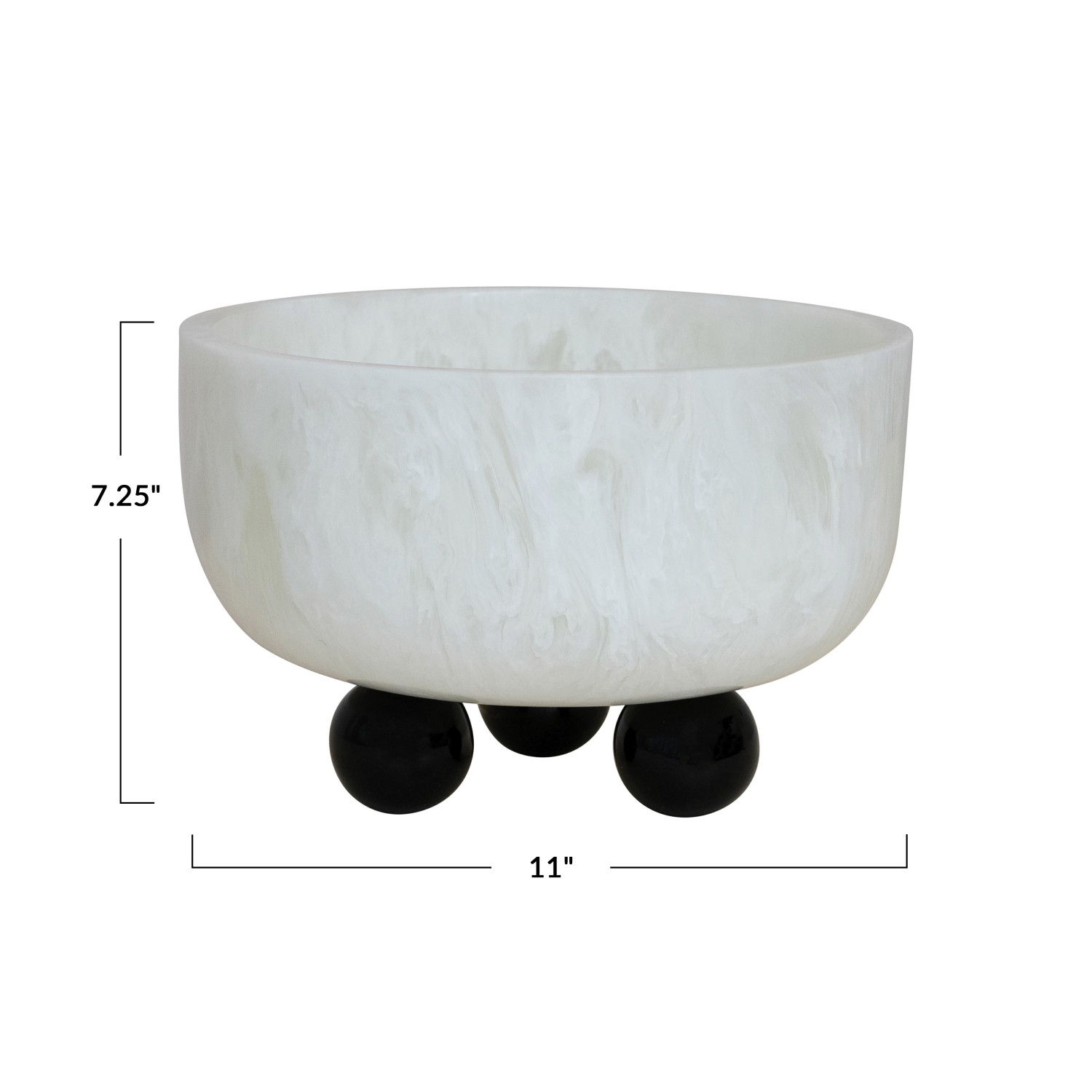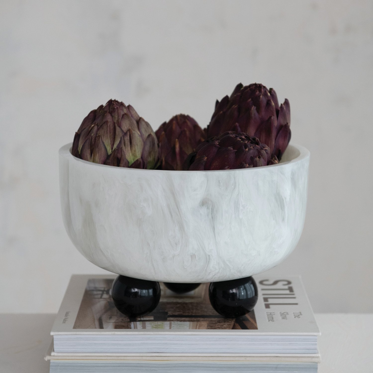 Marbled Resin Bowl w/ Ball Feet, White & Black (Each One Will Vary)