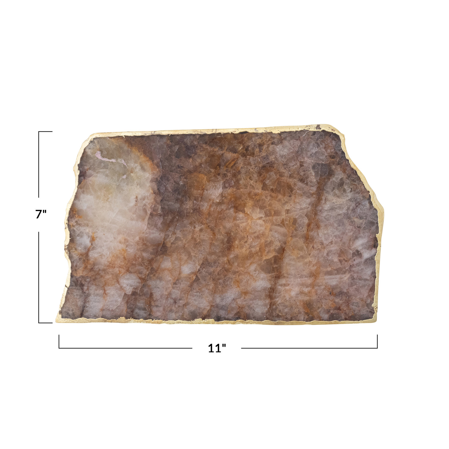 Catalog Name: Approximately 11"L x 7"W Agate Slab w/ Gold Electroplated Edge, Natural (Each One Will Vary)