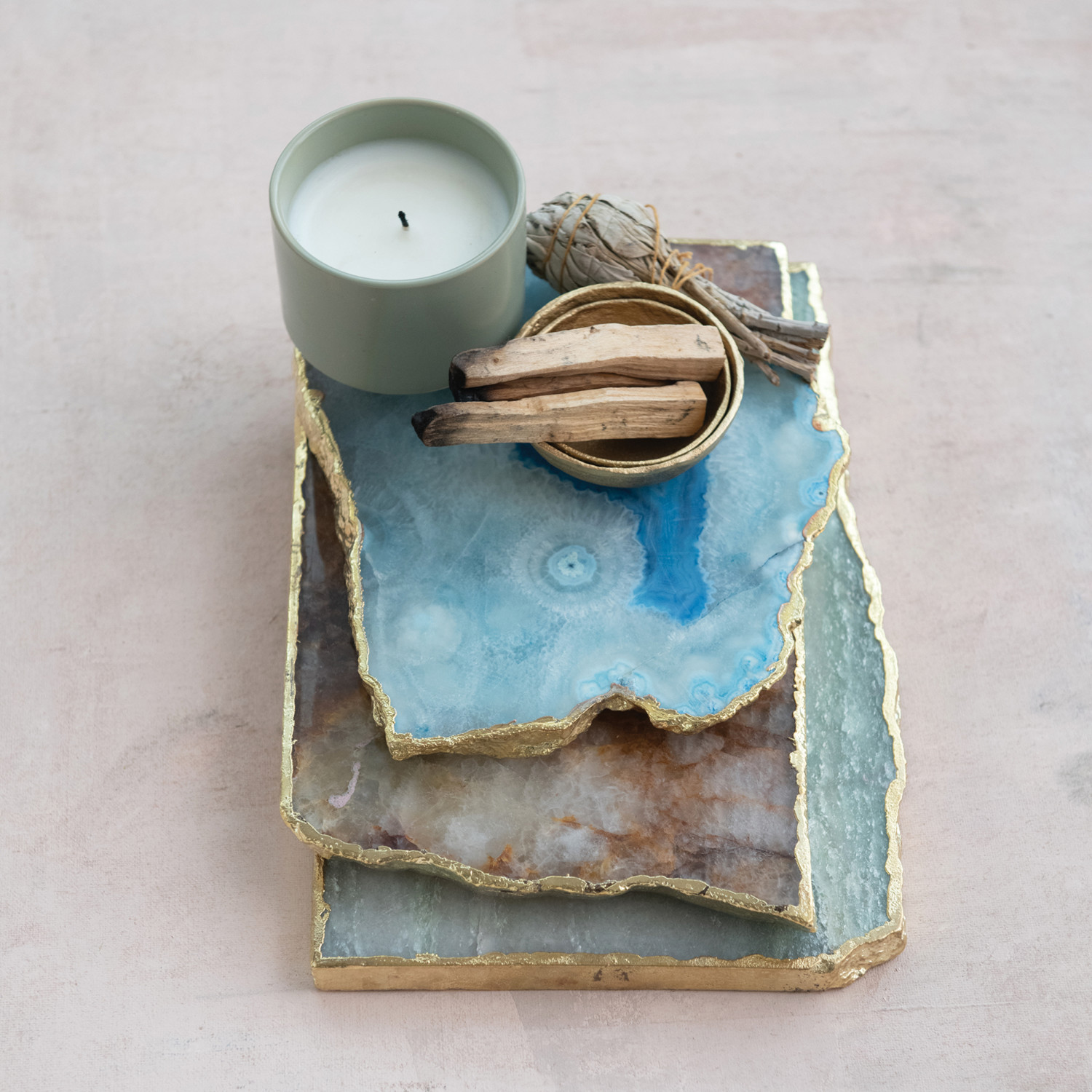 Agate Slab w/ Gold Electroplated Edge, Blue (Each One Will Vary)