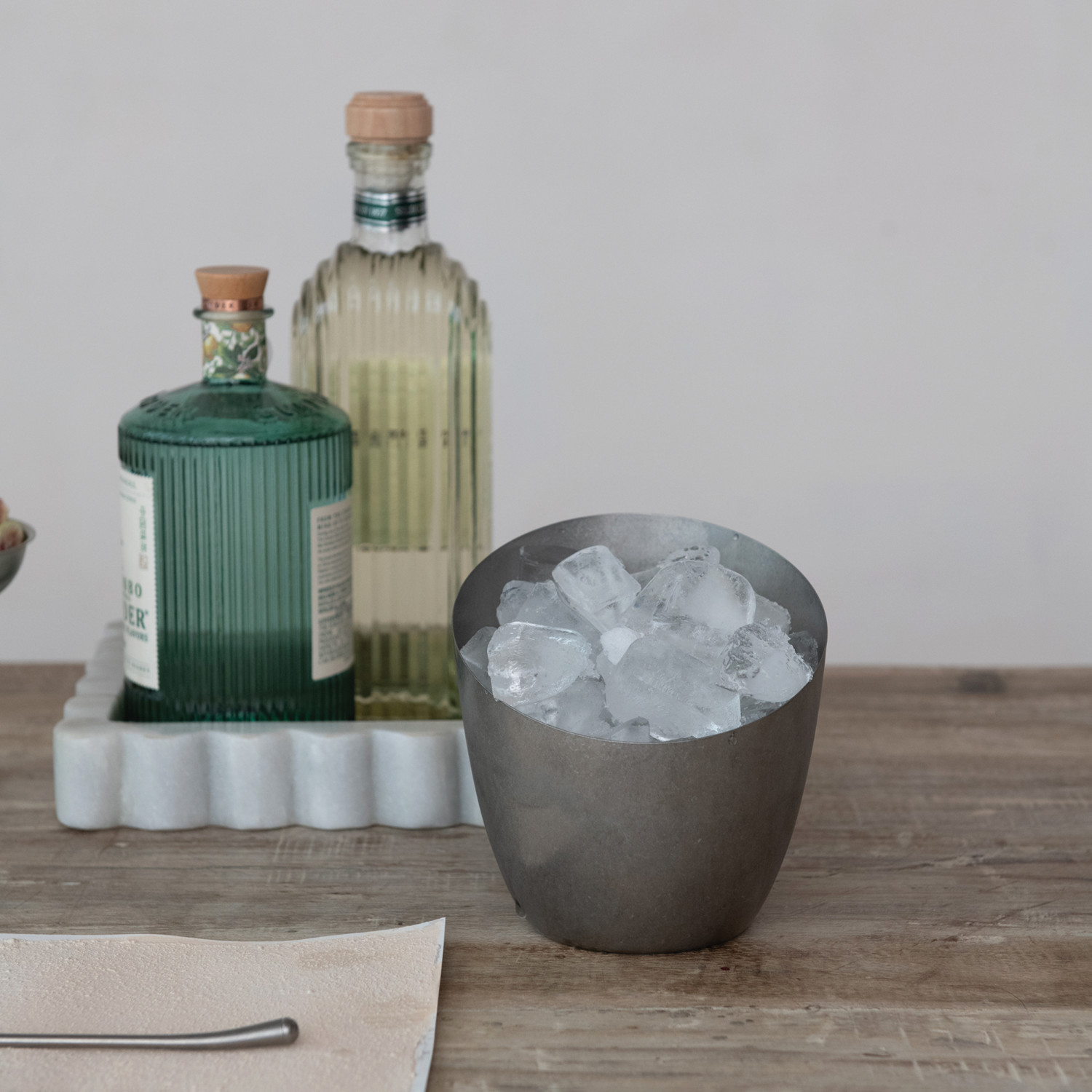 Stainless Steel Slanted Container, Brushed Pewter Finish