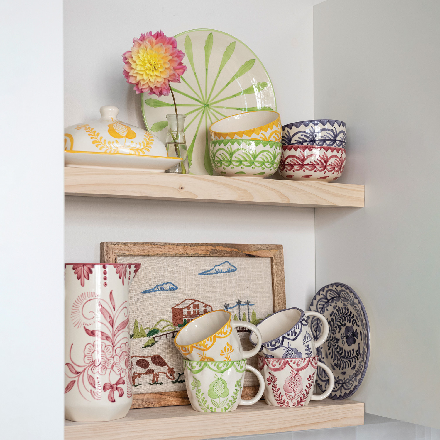 60 oz. Hand-Painted Stoneware Pitcher with Botanical Design (Each One Will Vary)