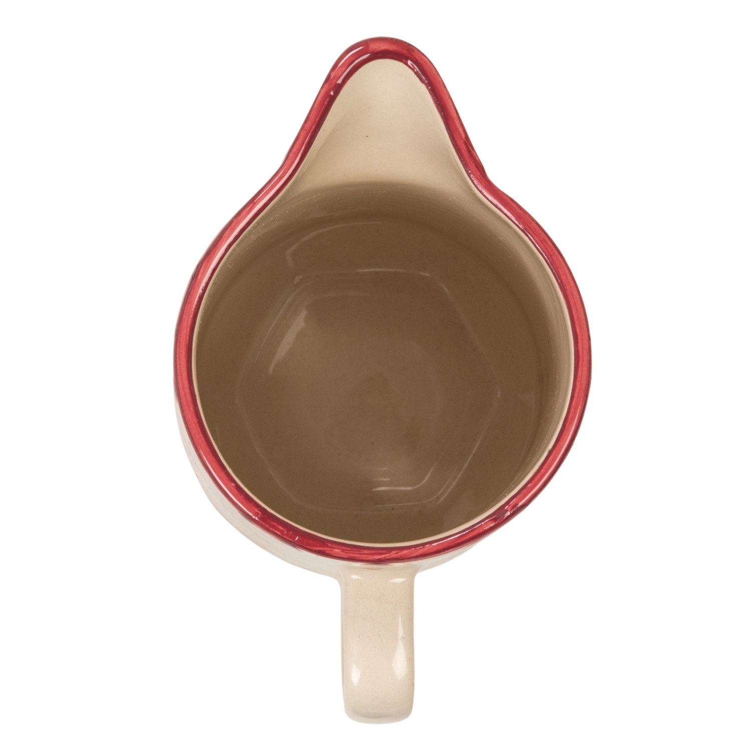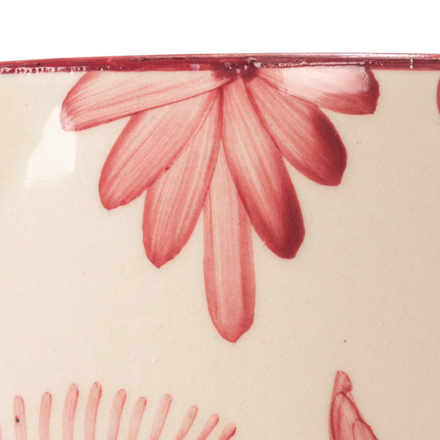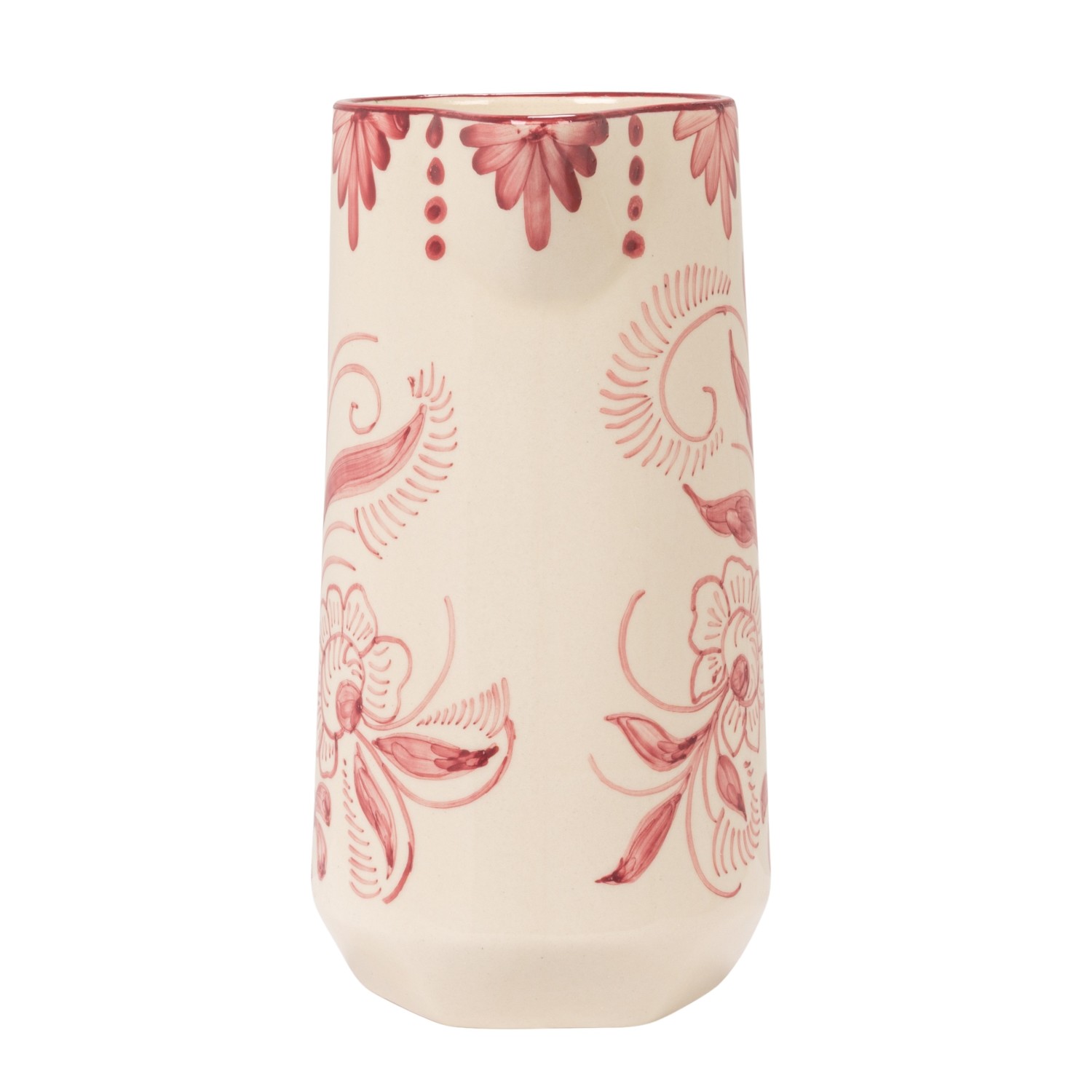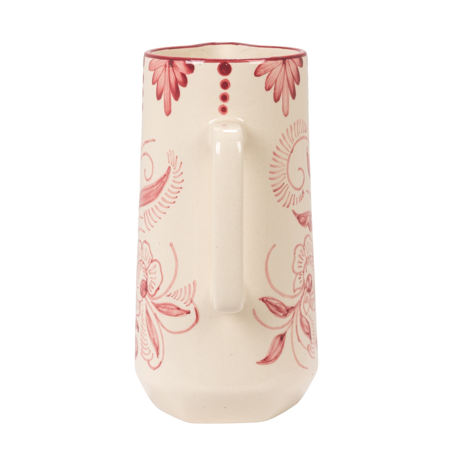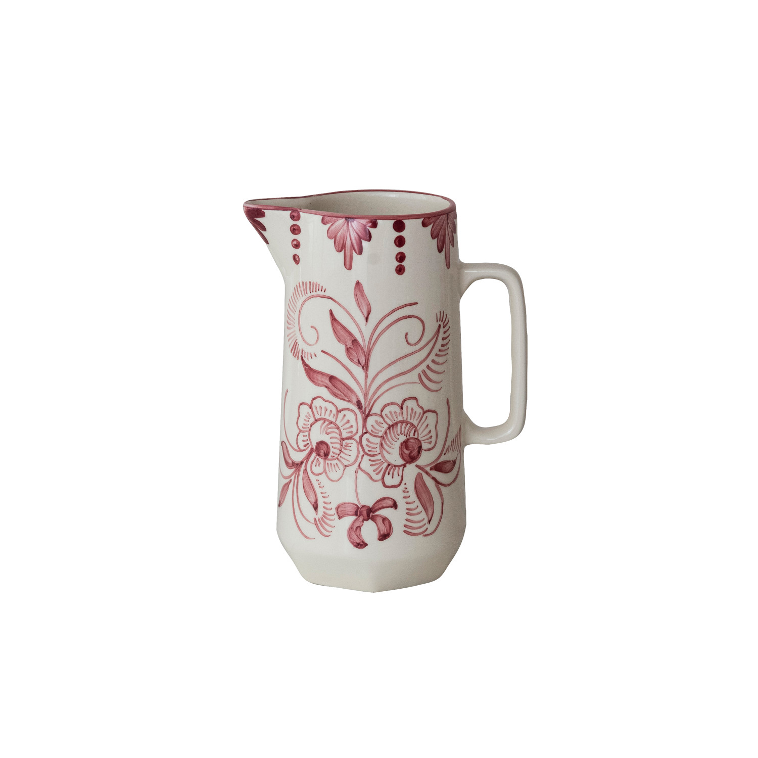 Catalog Name: 7-1/2"L x 5"W x 9-3/4"H 60 oz. Hand-Painted Stoneware Pitcher w/ Botanical Design, Burgundy & White (Each One Will Vary)