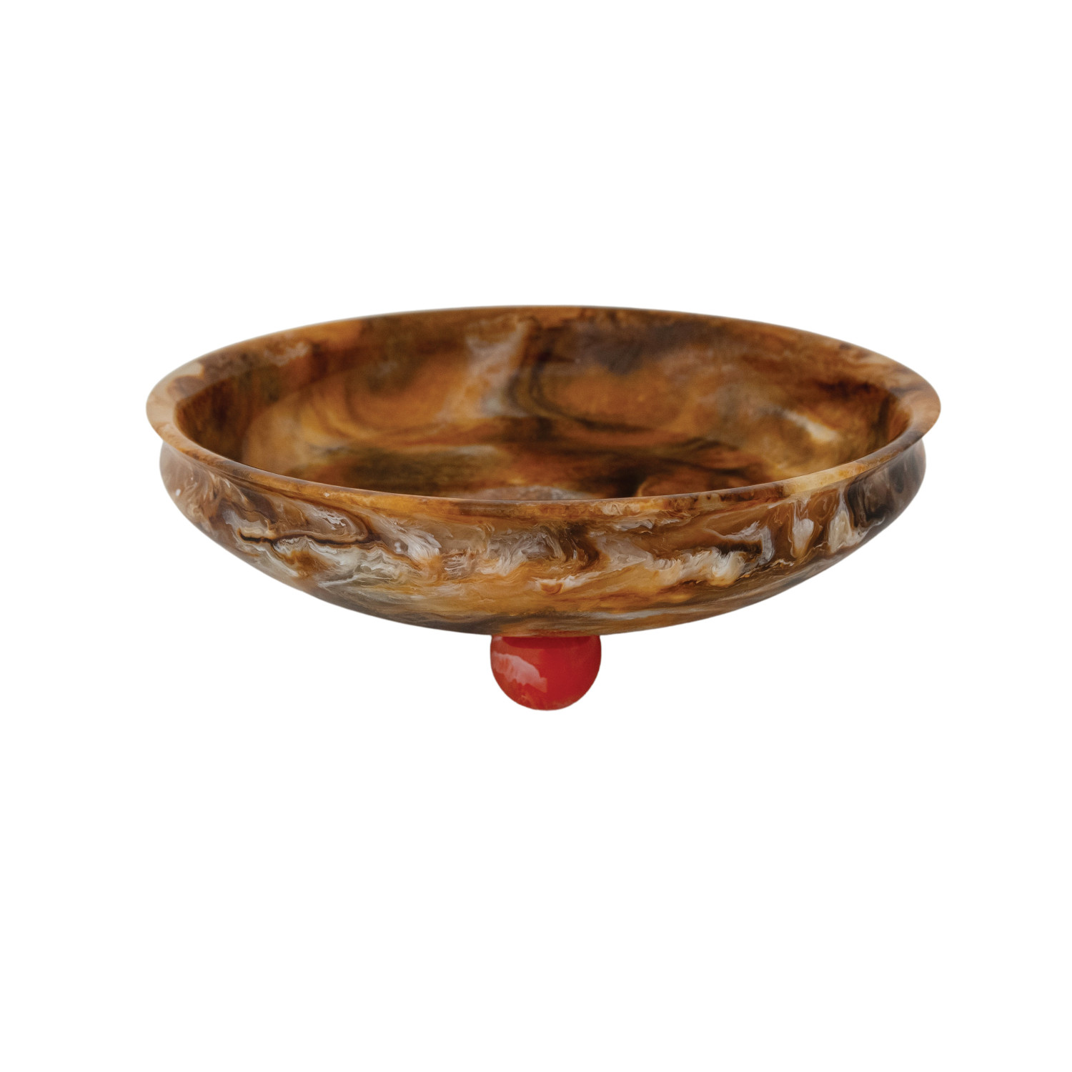 Marbled Resin Bowl with Orange Color Ball Feet, Brown & Cream Color (Each One Will Vary)