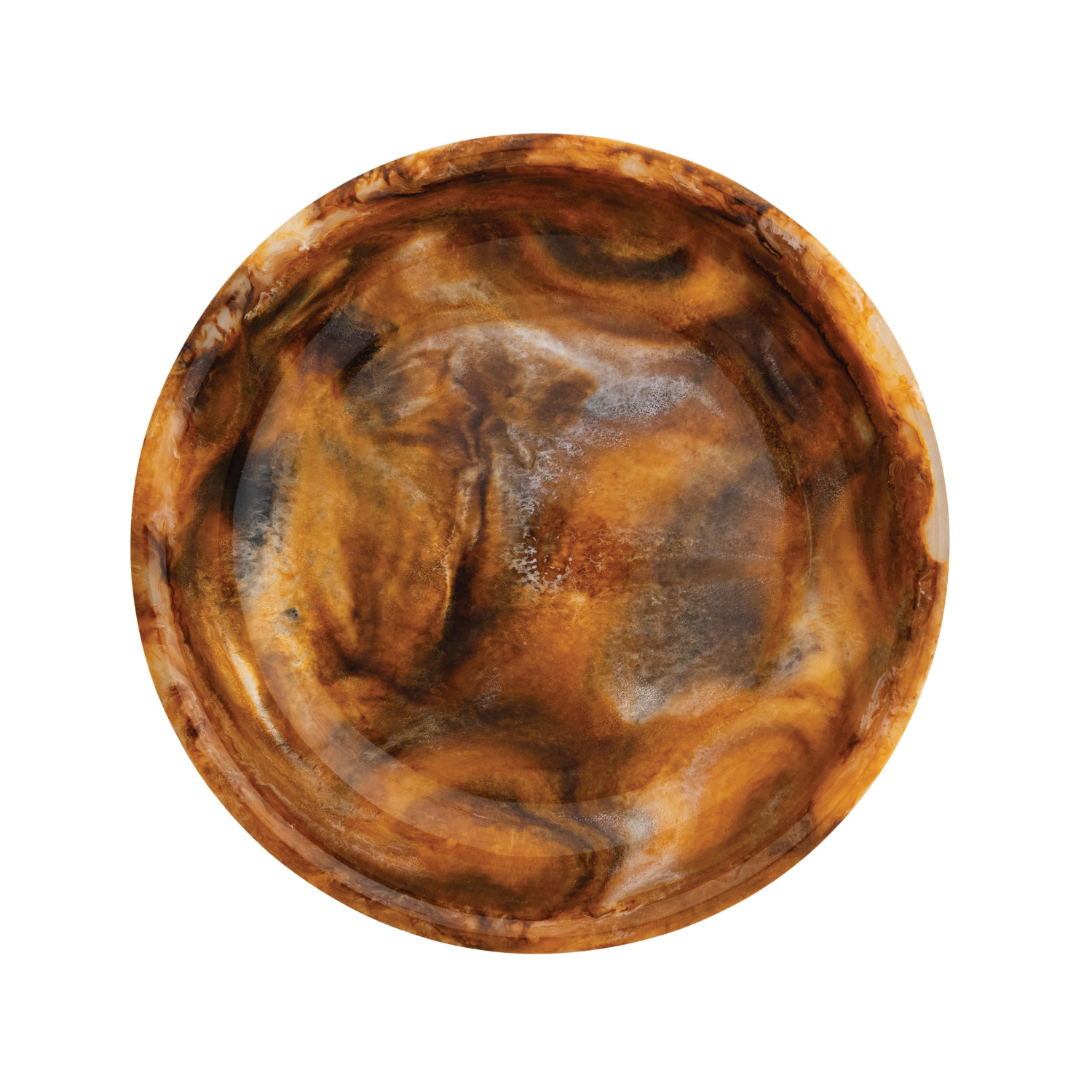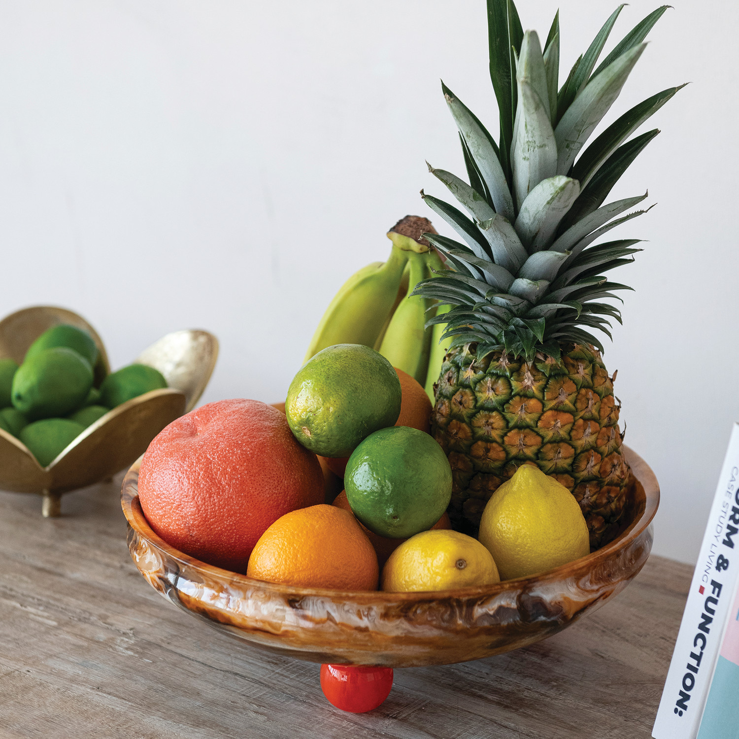 Catalog Name: 13-1/2" Round x 4-1/2"H Marbled Resin Bowl w/ Orange Color Ball Feet, Brown & Cream Color (Each One Will Vary)