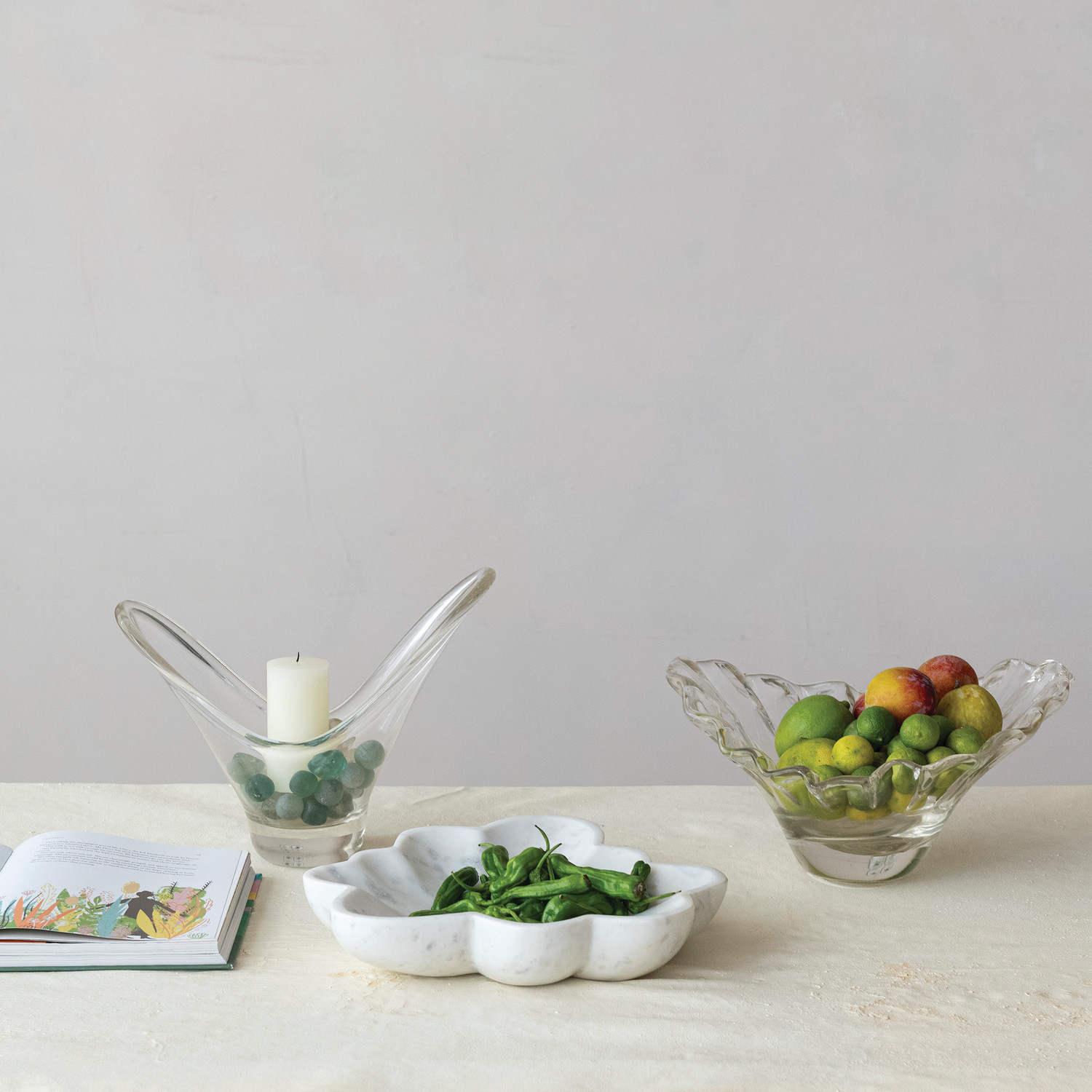 Hand-Blown Glass Pleated Organic Shaped Bowl (Each One Will Vary)