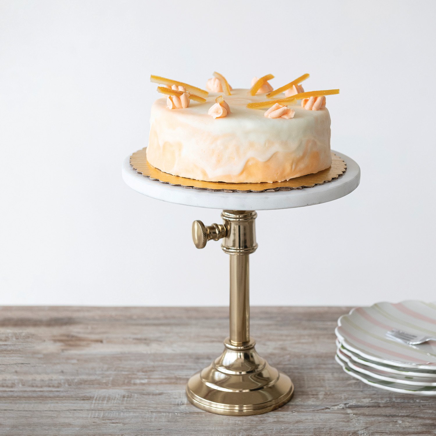 Adjustable Metal Pedestal with Marble Top, Gold Finish & White, KD