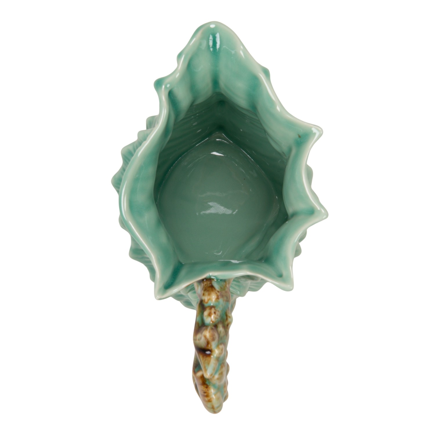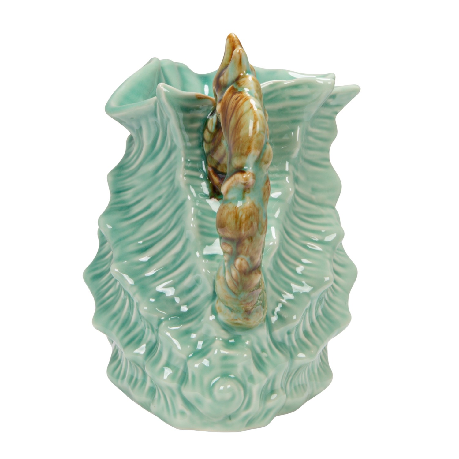 Catalog Name: 8-1/2"L x 5"W x 7"H 1 Quart Stoneware Shell Shaped Pitcher w/ Starfish & Shells Handle, Blue & Brown