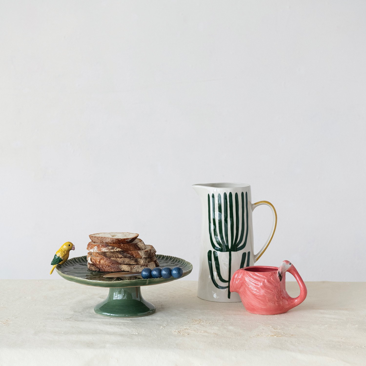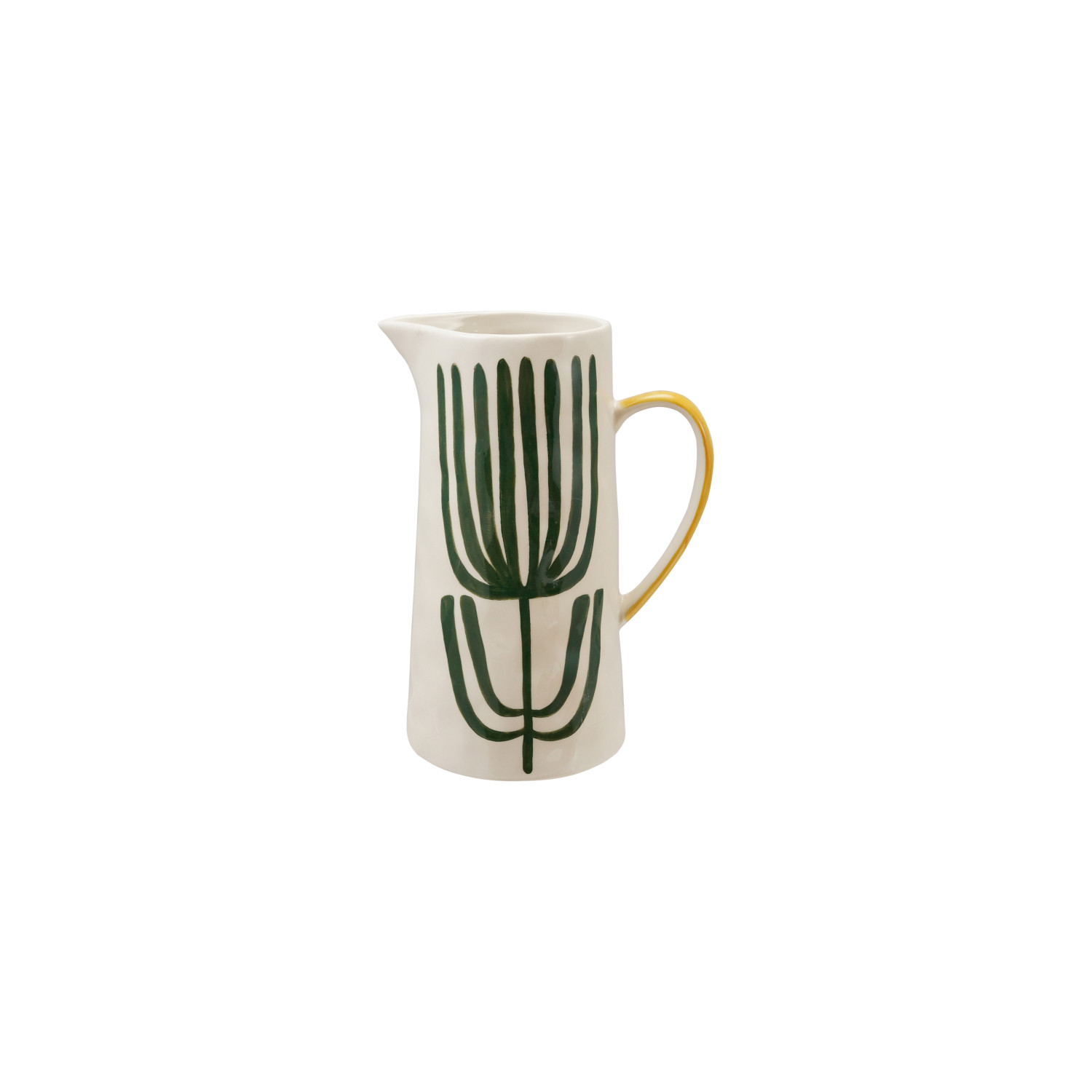 Catalog Name: 8"L x 5"W x 9-1/2"H 2 Quart Hand-Painted Stoneware Pitcher w/ Flower, White, Green & Yellow