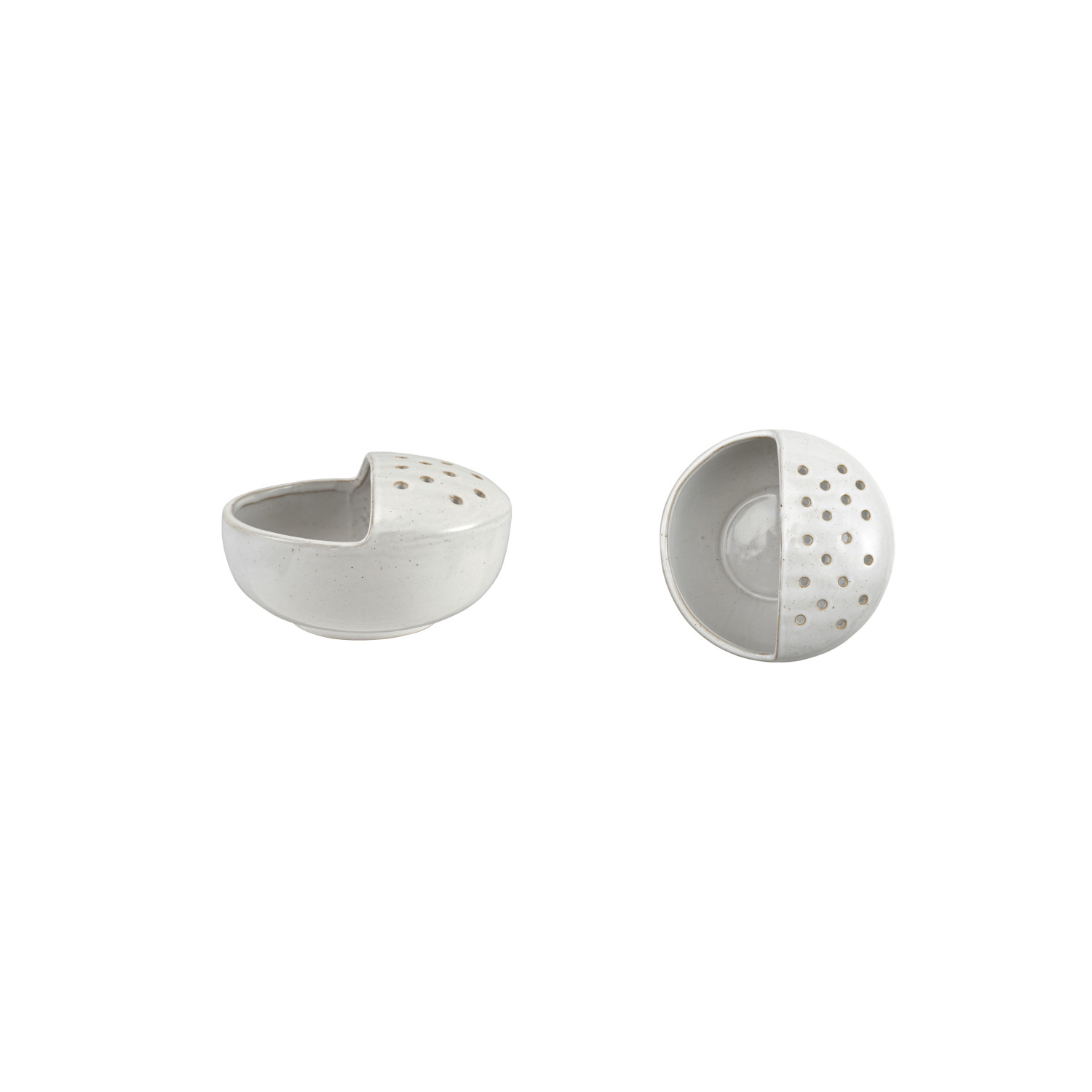 Catalog Name: 6-3/4" Round x 4"H Stoneware Strainer Bowl, Reactive Glaze, White (Each One Will Vary)