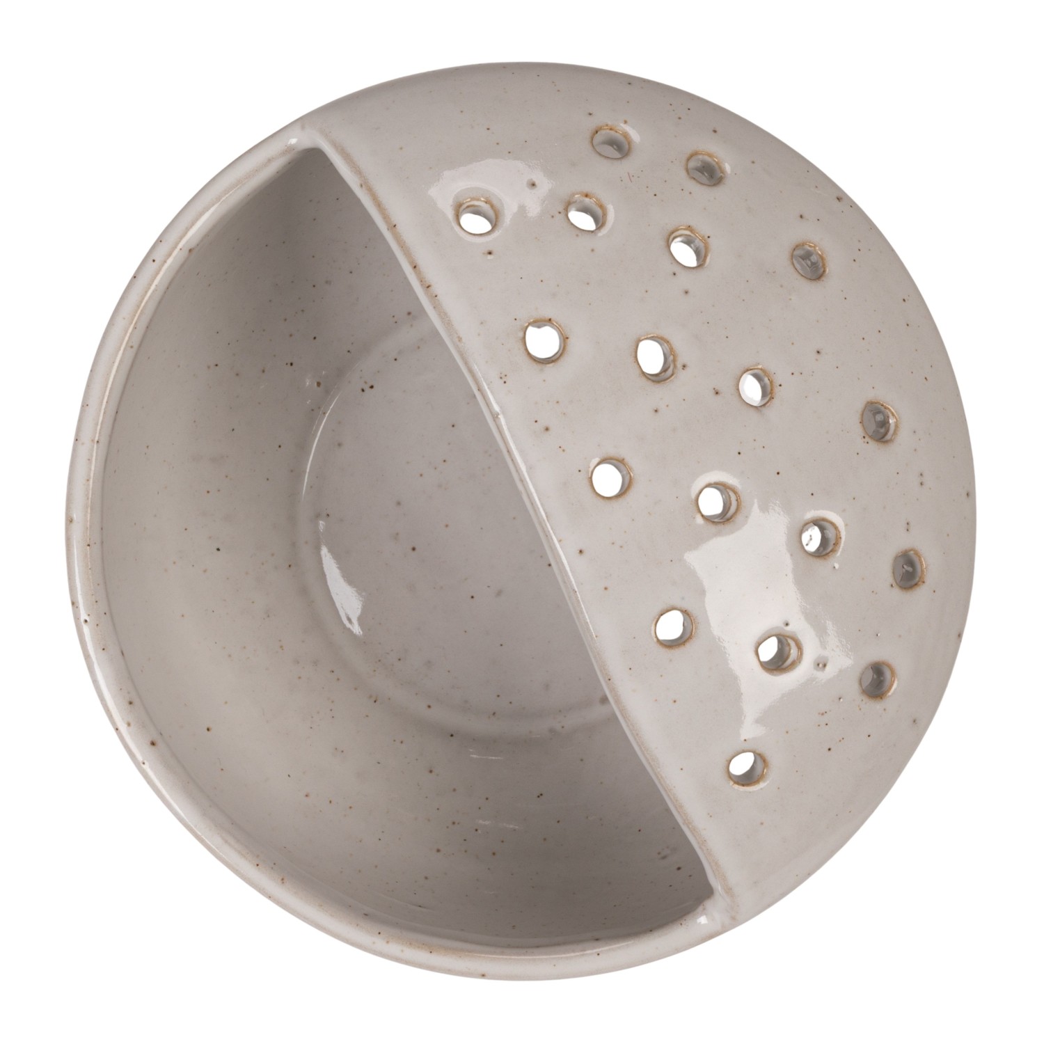 6-3/4" Round x 4"H Stoneware Strainer Bowl, White (Each One Will Vary)