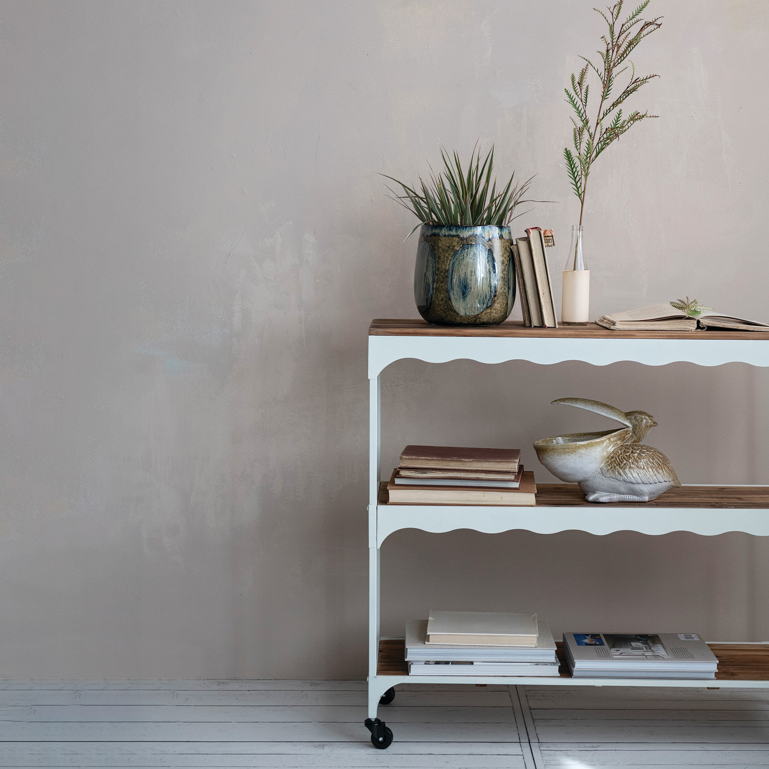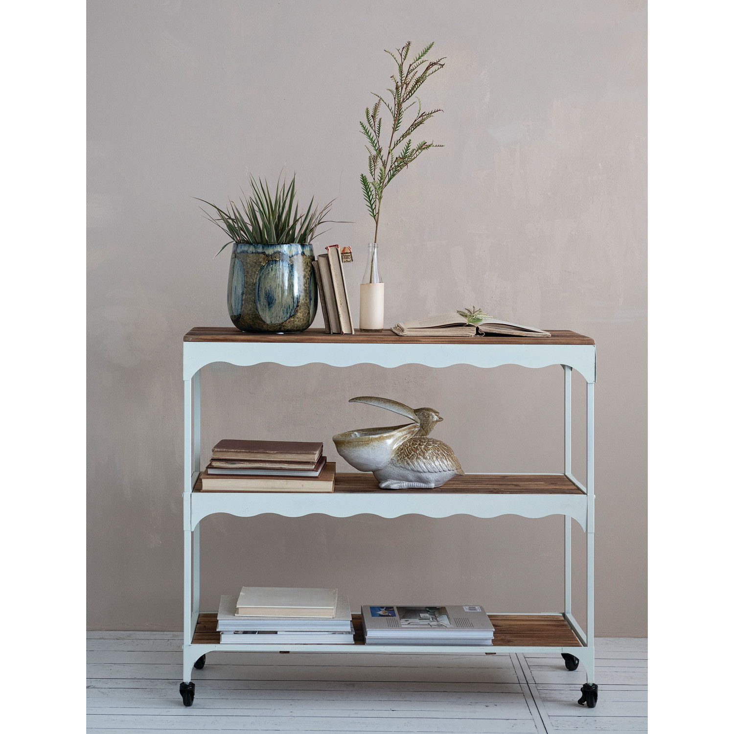 Metal & Wood 3-Tier Scalloped Cart on Casters, KD