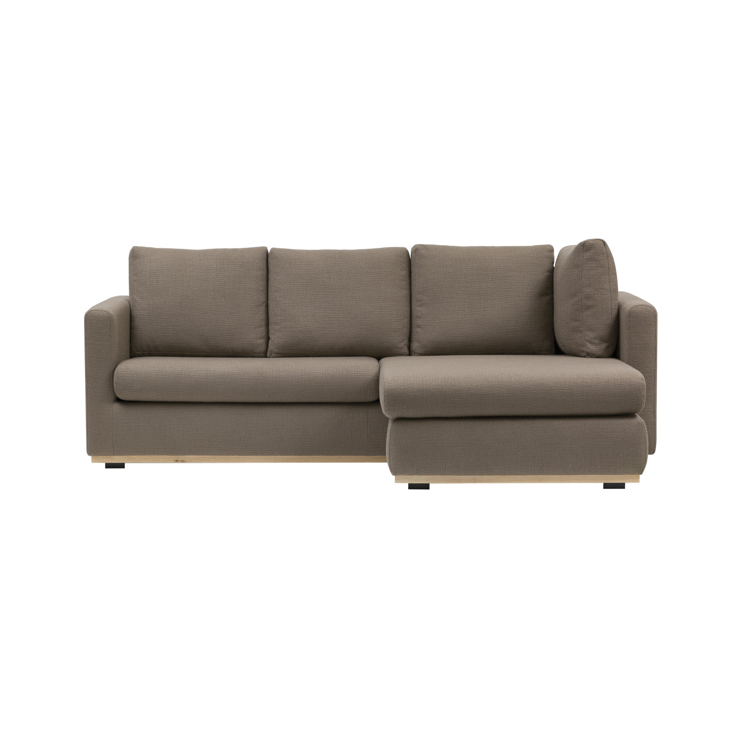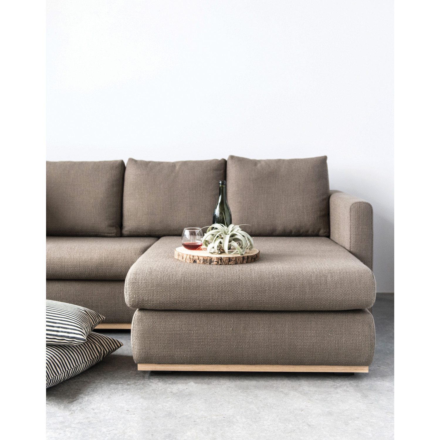 Modern L Shaped Sofa with Interchangeable Chaise Lounge and Wood Trim, Mushroom Brown
