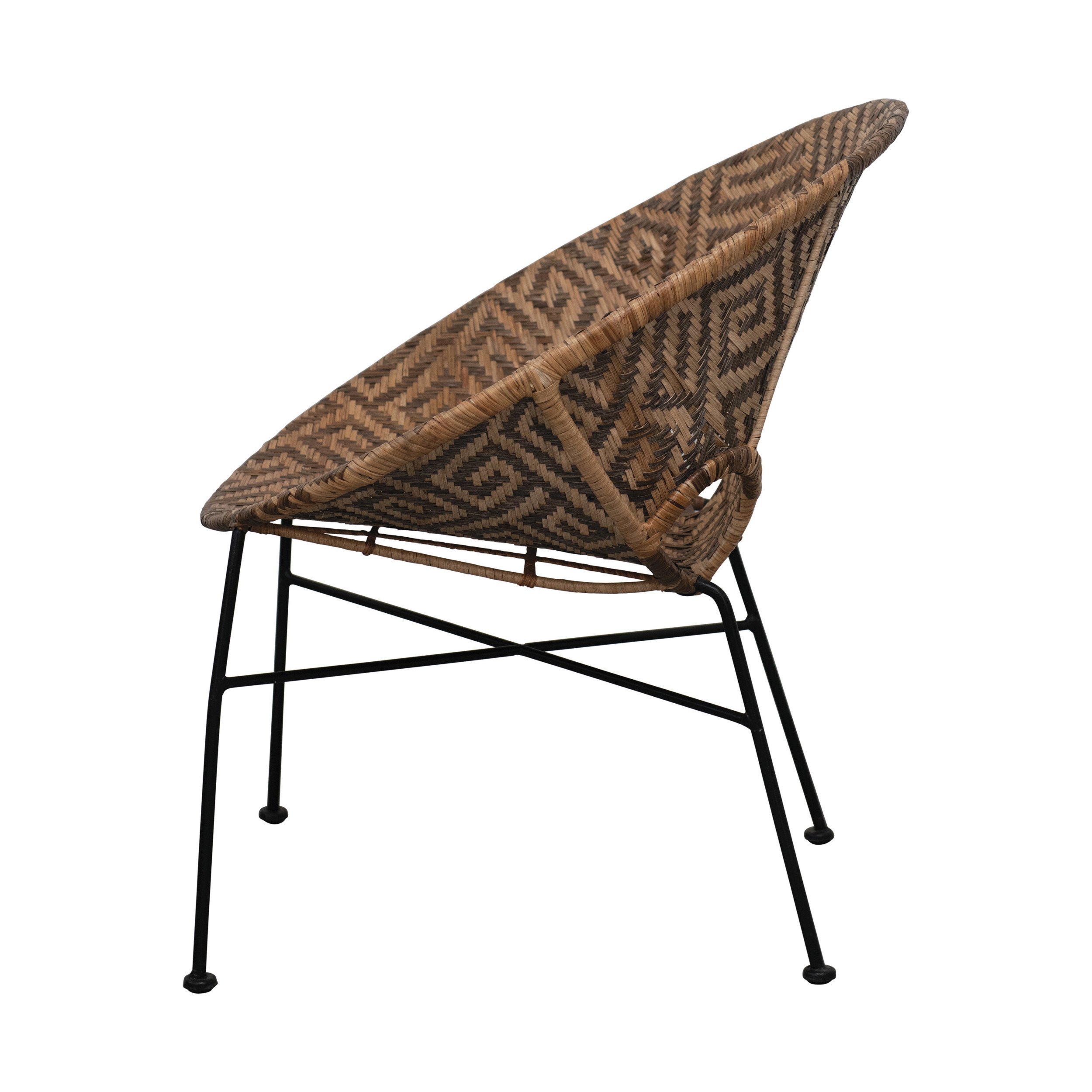 Catalog Name: 28"W x 28"D x 30"H Hand-Woven Rattan Chair w/ Pattern, Natural w/ Black Metal Frame