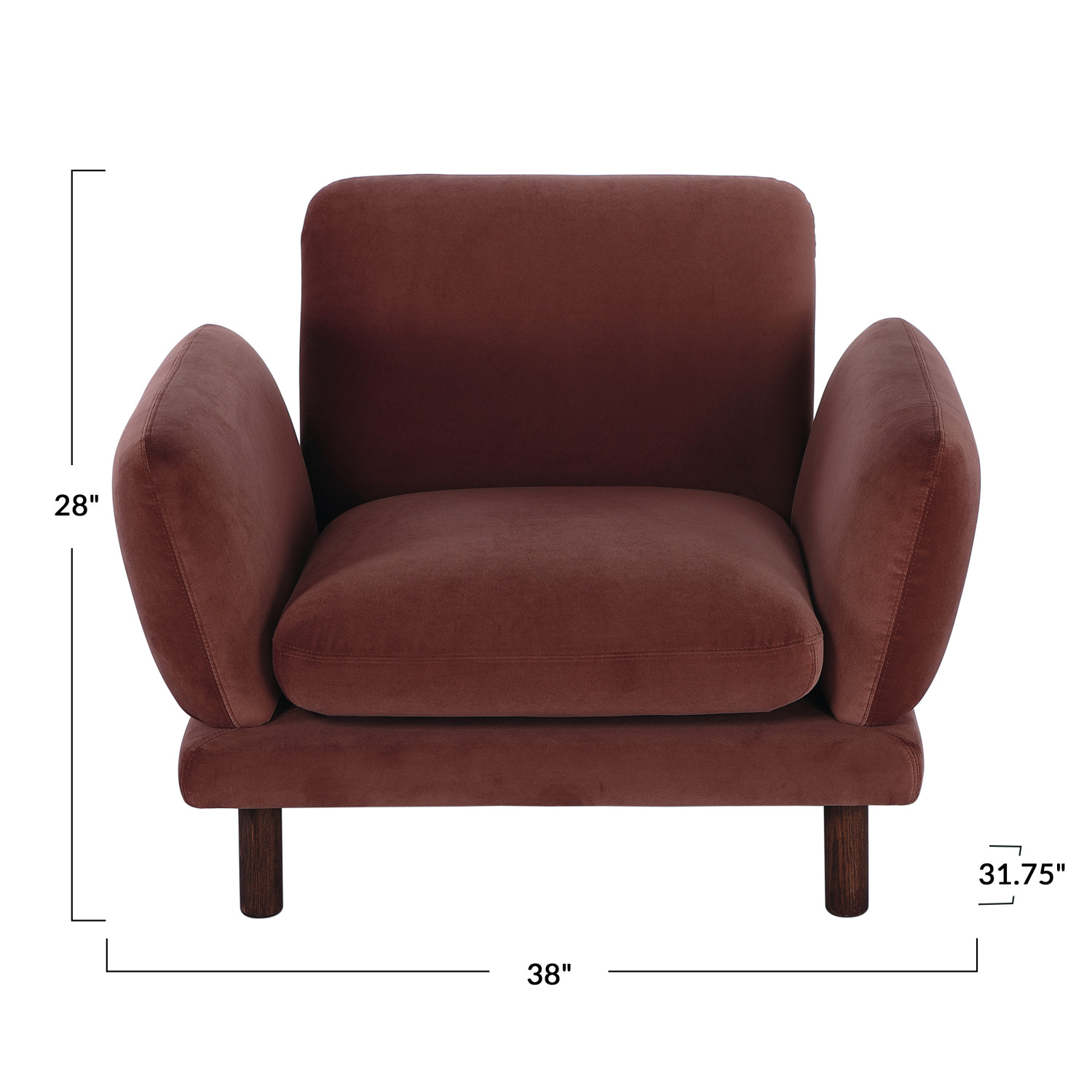 Catalog Name: 38"W x 31-3/4"D x 28"H Velvet Upholstered Chair w/ Oak Wood Legs, Clay Color & Natural, KD, Truck Ship