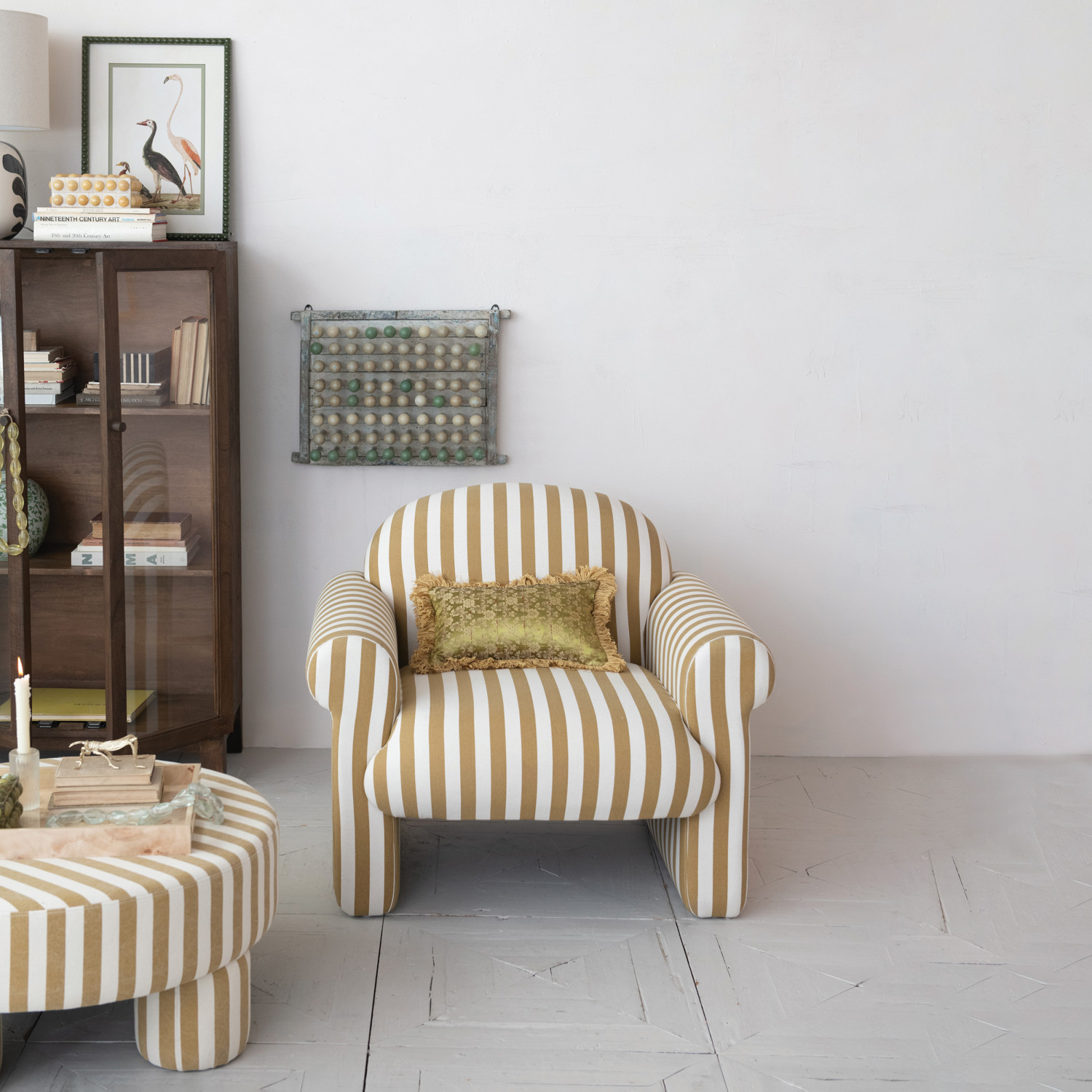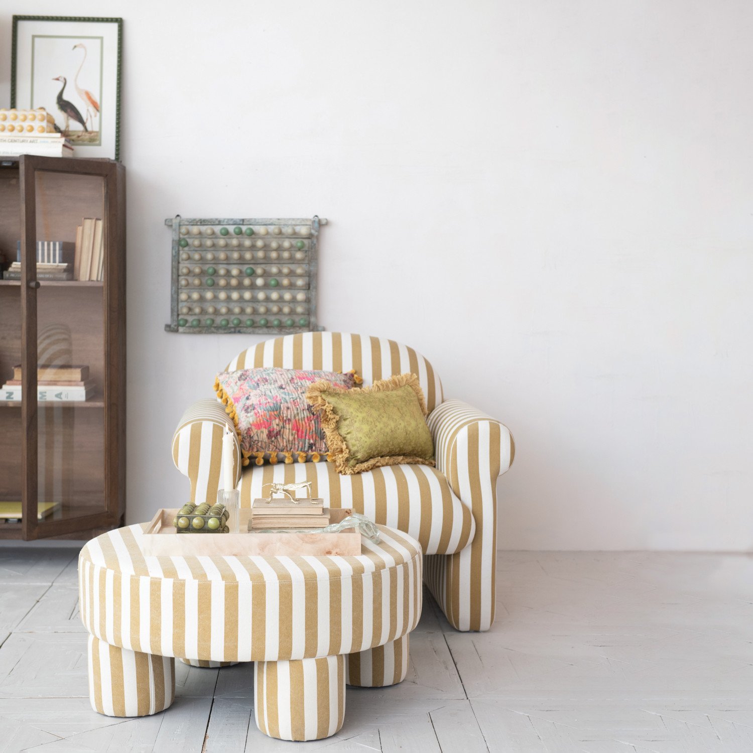 Fabric Upholstered Striped Chair, Cream & Mustard Color