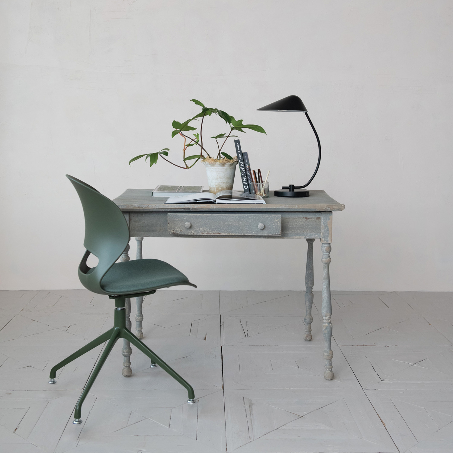 Metal & Plastic Swivel Chair w/ Fabric Upholstered Seat, Green & Grey, KD