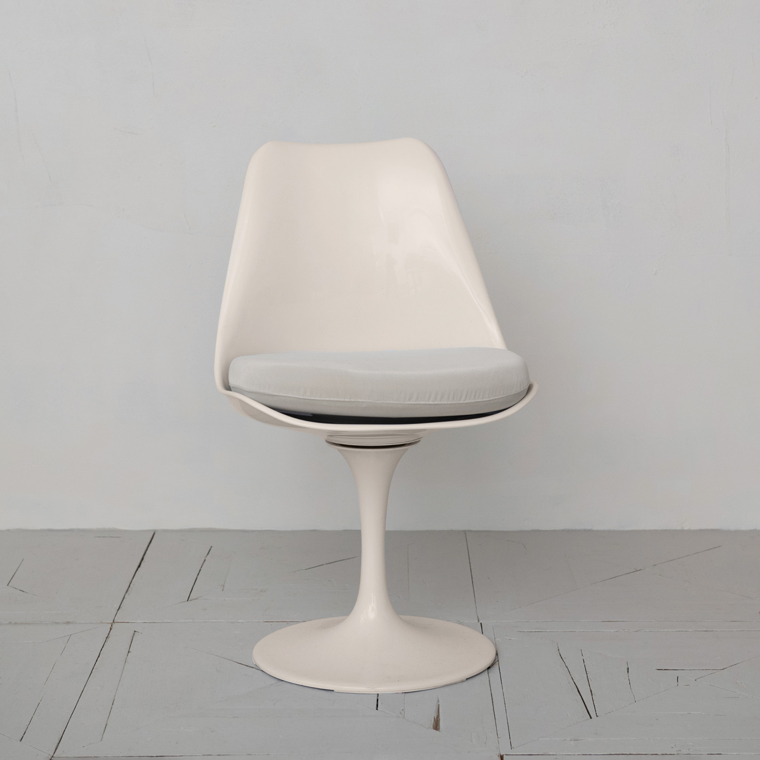Plastic Tulip Swivel Chair w/ Removable Cushion, Cream Color, KD