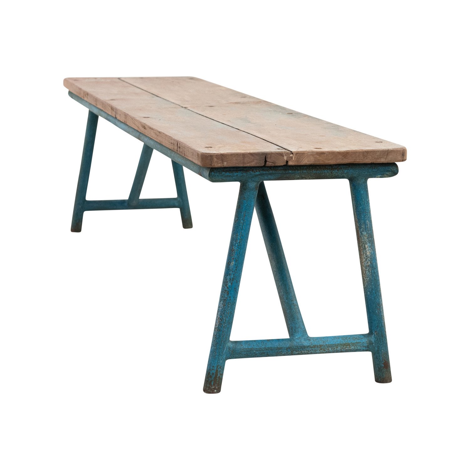 Reclaimed Wood & Metal Bench, Natural & Distressed Blue (Each One Will Vary)